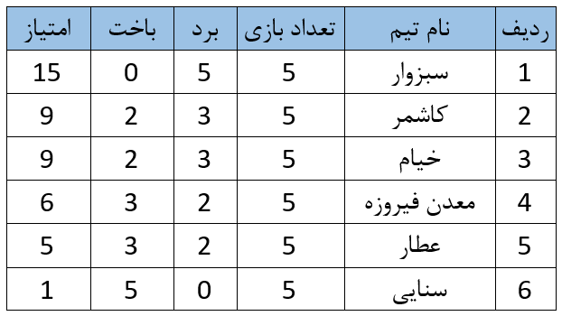 هفته پایانی مسابقات فوتبال جام سردار پارک ارغوان نیشابور روز جمعه 1404/06/14 :