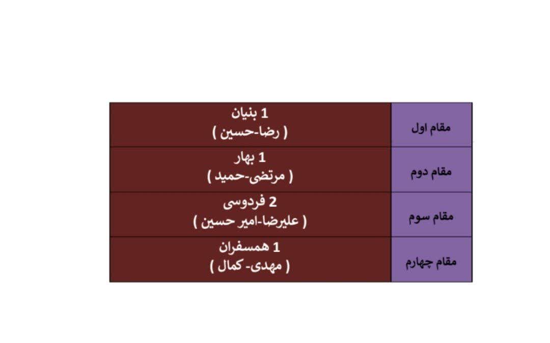 در پایان از همه خدمتگزاران عزیزی که ما را در برگزاری این مسابقات یاری رساندند تشکر میکنیم.