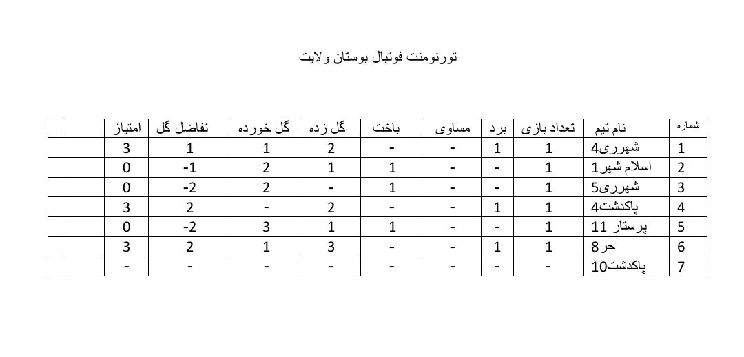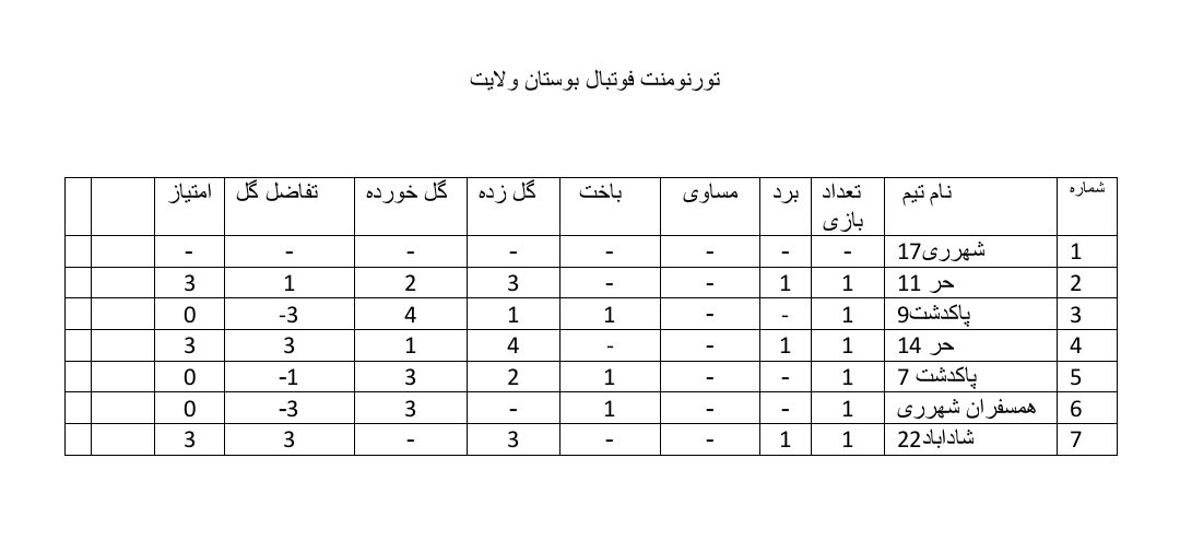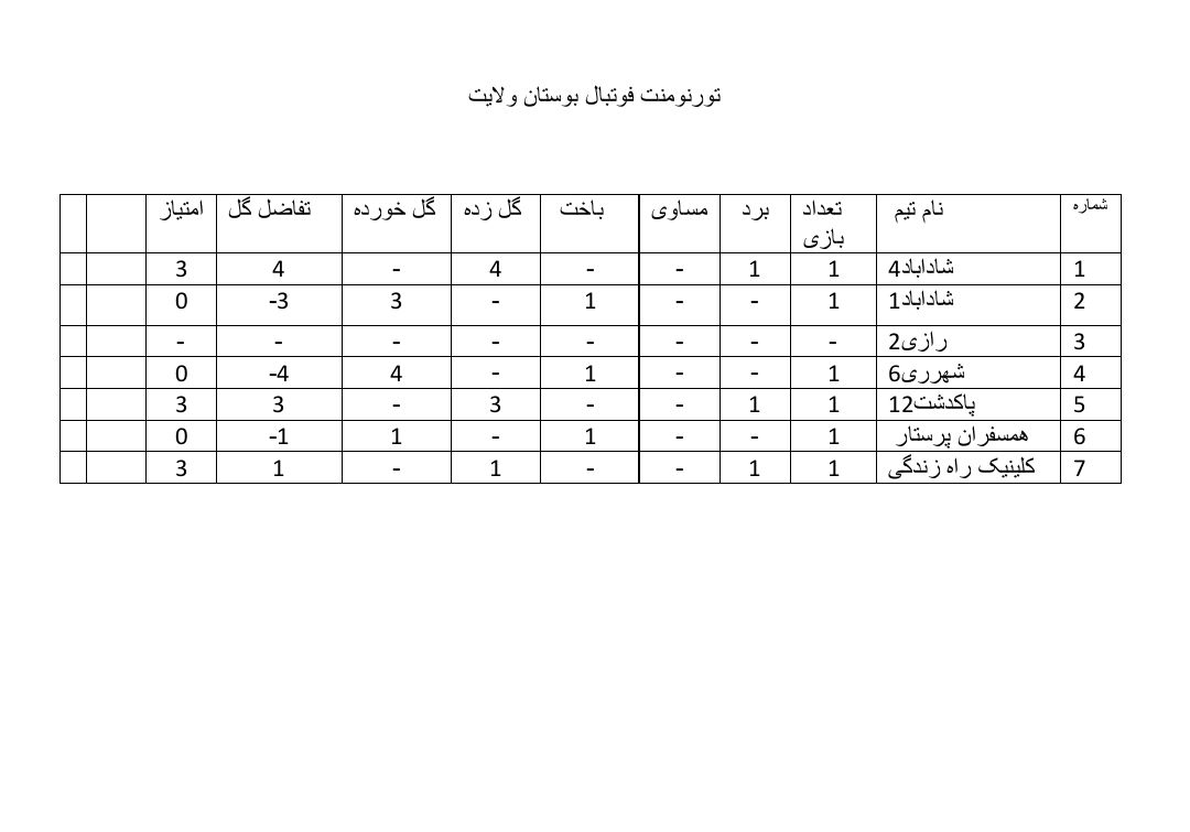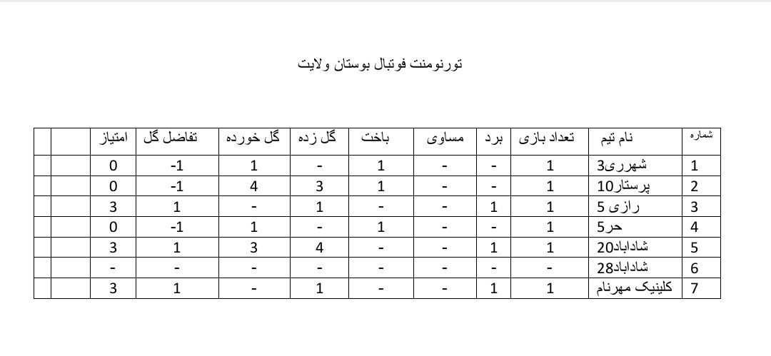 نتایج هفته اول مسابقات فوتبال بوستان ولایت