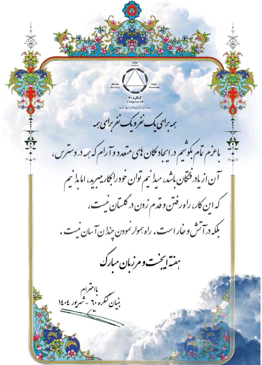 با عزم تمام بکوشیم در ایجاد مکان های متعدد وآرام که همه در دسترس آن از یادرفتگان باشد، میدانیم توان خود را بکار میبرید، اما بدانیم که این کار، راه رفتن و قدم زدن در گلستان نیست بلکه در آتش و خار است. راه هموارنمودن چندان آسان نیست.