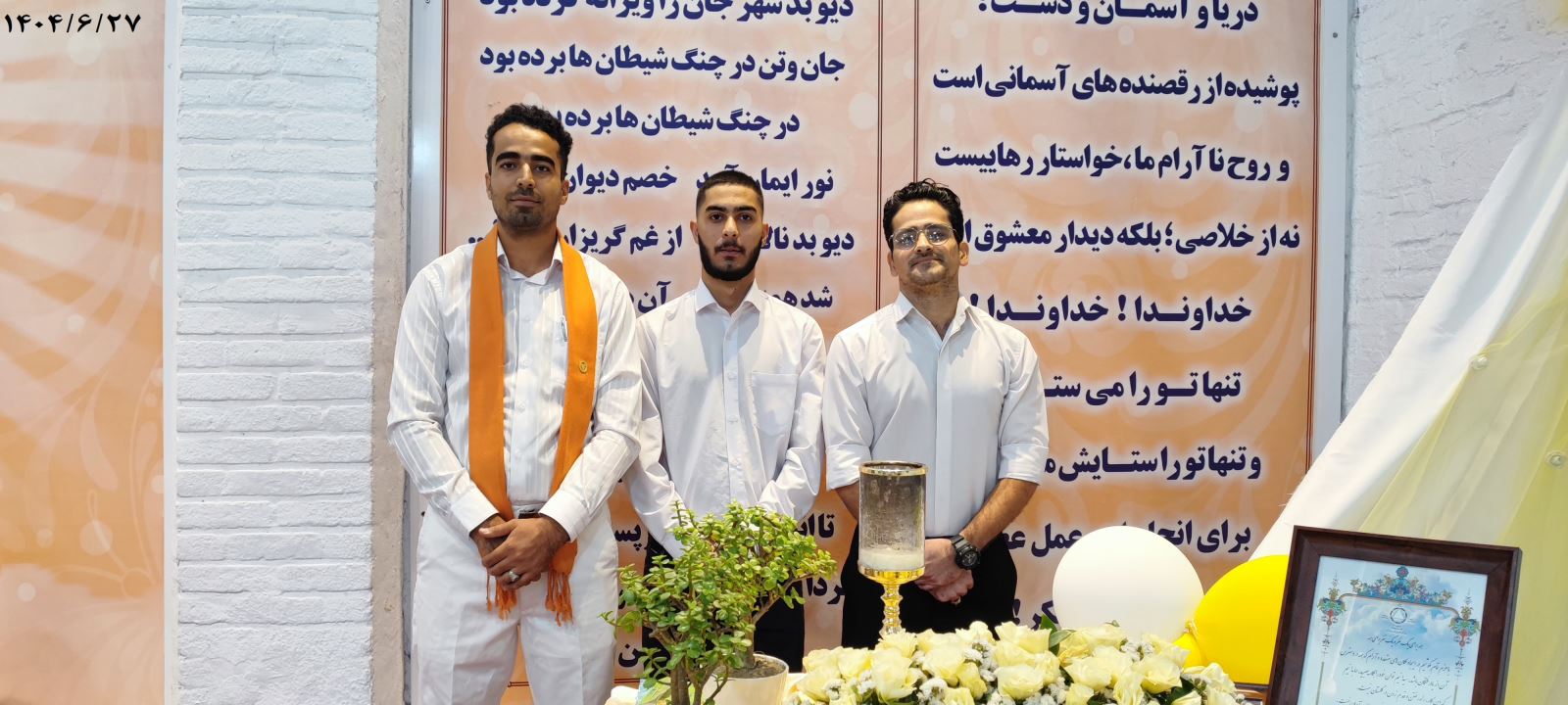 اخبار داخلی ارائه ۳۰ سیدی منبع: نمایندگی پرستار - همسفران آقا چهار شنبه 12 شهريور 1404 تعداد بازدید از این مطلب : 74 بدین وسیله، تحویل ۳۰ سی دی همسفر علیرضا را به دیدهبان محترم استاد امین و راهنما همسفر محمد تبریک عرض مینماییم. بارگذاری: خدمتگزاران سایت همسفران آقا شعبه پرستار منبع: نمایندگی پرستار - همسفران آقا چهار شنبه 12 شهريور 1404 تعداد بازدید از این مطلب : 74 ویژه ها مقاله "تأثیرات رفتاری و مولکولی پروتکل دی اس تی بر مدل حیوانی اعتیاد به تریاک" از مهندس حسین دژاکام، درصدر محافل علمی دنیا مورد بررسی و پذیرش قرار گر ارائه مقاله جدید و برجسته مهندس حسین دژاکام در حوزه درمان اعتیاد با روش DST با دقت سلولی مولکولی در کنفرانس بین المللی درمان اعتیاد در اورلاندو، فلوری دستاورد شگفتآور دیگری از تیم تحقیقاتی کنگره 60 در ریسرچ گیت منتشر گردید. دستاورد شگفت آور دیگری از کنگره 60، انتشار مقاله مهار متاستاز سرطان سینه به صورت short communication رویکردی نوین در درمان سرطان گواهی ارائه مقاله "تاثیر روش دی اس تی بر درمان زخمهای بیماری کولیت اولسراتیو" در سمپوزیوم ایمونولوژی 2024 ایلینوی، امریکا چاپ يافته هاي جديد كنگره 60 در مورد تاثير ديسپ بر كويد 19 سمپوزیم سرطان پستان (سن آنتونیو، تگزاس، امریکا، 19 خرداد تا دوم تیرماه 1403)