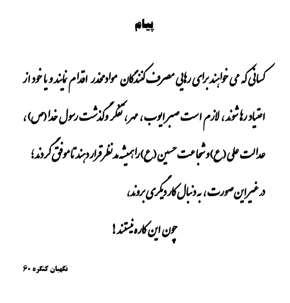 مرزبانی در کنگره ۶۰، یعنی ایستادن در کنار خط زندگی و مرگ و گفتن به هر رهگذر خسته: "اینجا، مسیر درست است. قدم بگذار، ما با تو هستیم." یعنی بخشی از زنجیرهای باشی که درد را به درک، و تاریکی را به روشنی پیوند میزند.