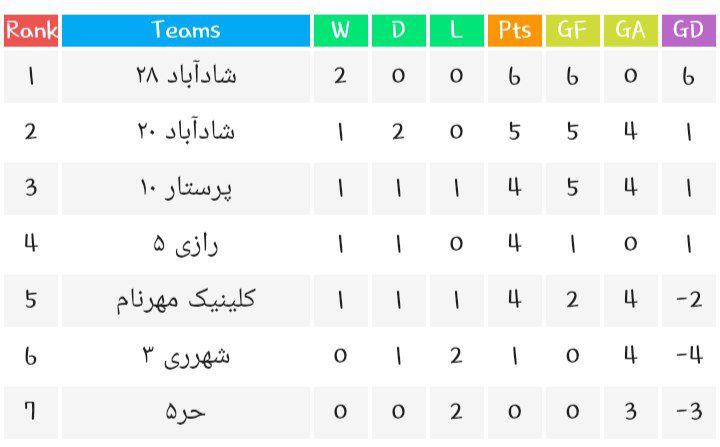 برنامه هفته چهارم ونتایج هفته سوم وجدول مسابقات فوتبال کنگره ۶۰ (بوستان ولایت)