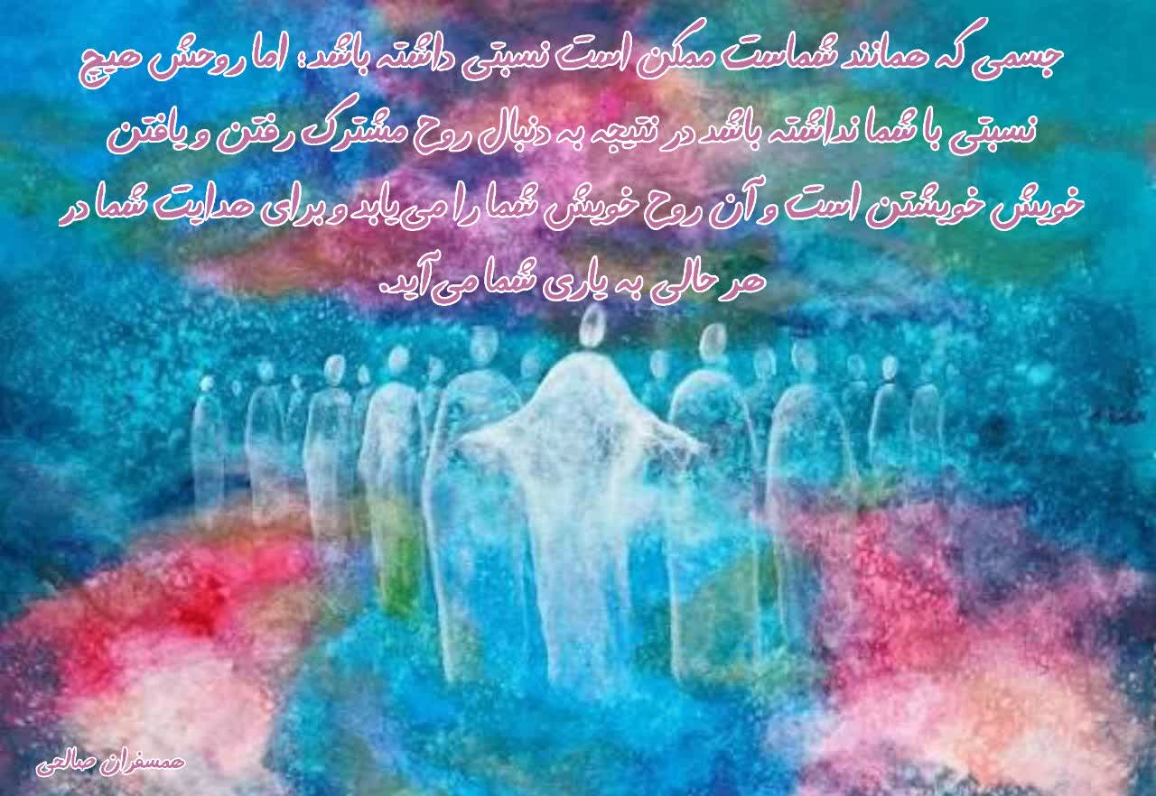 گاهی اوقات افرادی هستند که به همدیگر کمک میرسانند؛ اما هیچ نسبت خونی با هم ندارند؛ بلکه آنها روح مشترک هستند آن روح مشترک به یاری ما میآید. همین کاری که در کنگره۶۰ راهنماها و خدمتگزارها انجام میدهند. جمع روح مشترک را ید واحده میگویند. اعضاء کنگره۶۰ همگی ید واحده هستند.