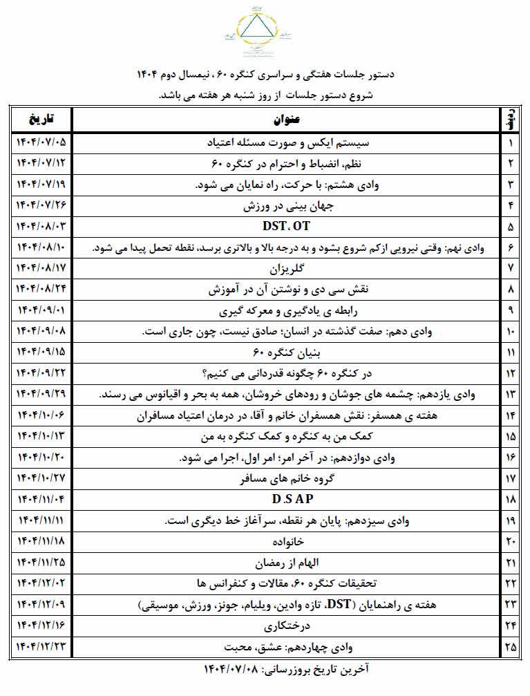 اطلاعیه دستور جلسات هفتگی منبع: نمایندگی سهروردی چهار شنبه 9 مهر 1404 تعداد بازدید از این مطلب : 89 منبع: نمایندگی سهروردی چهار شنبه 9 مهر 1404 تعداد بازدید از این مطلب : 89 ویژه ها مقاله "تأثیرات رفتاری و مولکولی پروتکل دی اس تی بر مدل حیوانی اعتیاد به تریاک" از مهندس حسین دژاکام، درصدر محافل علمی دنیا مورد بررسی و پذیرش قرار گر ارائه مقاله جدید و برجسته مهندس حسین دژاکام در حوزه درمان اعتیاد با روش DST با دقت سلولی مولکولی در کنفرانس بین المللی درمان اعتیاد در اورلاندو، فلوری دستاورد شگفتآور دیگری از تیم تحقیقاتی کنگره 60 در ریسرچ گیت منتشر گردید. دستاورد شگفت آور دیگری از کنگره 60، انتشار مقاله مهار متاستاز سرطان سینه به صورت short communication رویکردی نوین در درمان سرطان گواهی ارائه مقاله "تاثیر روش دی اس تی بر درمان زخمهای بیماری کولیت اولسراتیو" در سمپوزیوم ایمونولوژی 2024 ایلینوی، امریکا چاپ يافته هاي جديد كنگره 60 در مورد تاثير ديسپ بر كويد 19 سمپوزیم سرطان پستان (سن آنتونیو، تگزاس، امریکا، 19 خرداد تا دوم تیرماه 1403)