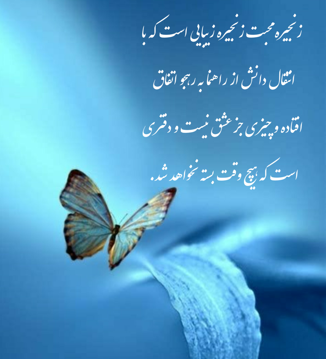 محبت صوری نیست، محبت به لمس و سخن نیست، محبت دو سر یک کمان بی انتهاست، محبت آغاز و پایانی مشخص ندارد؛ محبت اگر باشد حقیقت است و دیدن حقیقت، چشم دل میخواهد ...