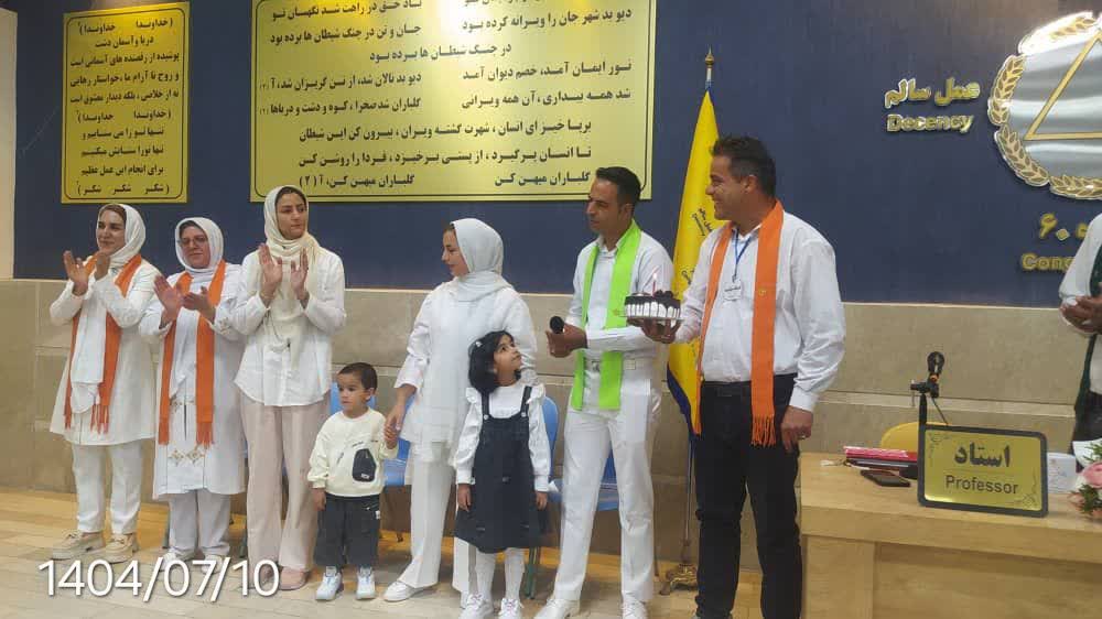 سلام دوستان زهرا هستم یک همسفر خداوند را شاکرم که این جایگاه را تجربه میکنم خوشحالم که جشن آزاد مردی خود را در این شعبه برگزار میکنیم. از جناب آقای مهندس دژاکام و خانواده محترمشان بسیار سپاسگزارم که همچین بستر امنی را برای من و مسافرم فراهم کردند تا بتوانم به آرامش برسم و آموزش بگیرم از راهنمای مسافرم، در سفر اول و سفر دوم تشکر میکنم از آقا مرتضی تشکر میکنم و به ایشان تبریک عرض میکنم. از راهنماهای خوب خودم خانم سوسن عزیزم و خانم ناهید عزیزم سپاسگزارم و قدردان زحماتشان هستم. از مسافر عزیزم تشکر میکنم که این مسیر را انتخاب کرد تا آرامش را به زندگیمان ببخشد امیدوارم که تک تک شما سفر اولیها این حس را تجربه کنید. از همه شما سپاسگزارم که در جشن ما شرکت کردید و حال خوب را به ما انتقال دادید.