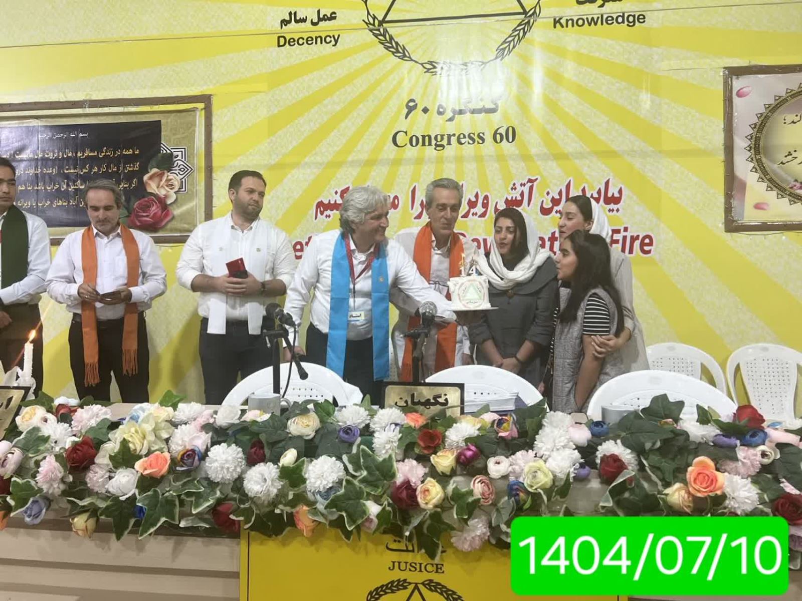 ما اگر یک کاری را نخواهیم انجام ندهیم به تنهایی نمی توانیم چه تفکری باید پشتوانه یک فرد باشد که بیاید خدمتگزار باشد در اندیشه خدمت کردن حال خوبی که بدست می آورد و این حال خوب چه چیزی را نصیب ما می کند ما یک تفکری را ما باید از دست بدهیم تا یک تفکر جدیدی بدست بیاریم و این نبرد درونی که درون هر فردی شکل می گیرد اگر در صراط مستقیم قرار بگیرد می آید و به رهایی می رسد می آید یک سال و دو سال و بیست سال و اصلا اعتیاد و مواد مخدر از تفکرش خارج می شود چون یاد می گیریم که ارتباط مان را با جهان هستی برقرار کنیم تا بتوانیم حال خوب را درک کنیم من با وحیدآقای ریخته گر ارتباط دورا دوری دارم ولی در کنگره چون تفکرات مان خیلی به  هم نزدیک است خیلی زود آدم ها همدیگر را درک می کنند چون راجب به مسائل که ما صحبت می کنیم تفکرمان و اندیشه مان و آموزش مان از یک منبع آگاهی است راحت می توانیم درک کنیم که راهنماها چه می گویند مرزبان ها چه می گویند ارتباط ها خیلی زود برقرار می شود چه این طرف ایران باشیم چه آن طرف ایران هیچ تفاوتی در اندیشه نمی کند با آقا وحید هم همین اتفاق افتاد زمانی که ارتباط خدمتی و کنگره ای برقرار شد حس محبتی است که بین اعضاء به وجود آمد من از صمیم قلب به خودش و خانواده محترم شان تبریک عرض می کنم به وحید آقا هر کجا که گفتیم رفته خدمت کرده است هرکاری از دست ش بر  آمده انجام داده است وحید آقا آخرین باری که خدمت کرده کاشمر بوده است و بعدش هم همین شعبه رضا در مشهد بوده است بهشت را به بهاء می دهند به بهانه نمی دهند آدم تا برای خودش زخمت نکشد نیاید روی صندلی بشیند و حرف گوش نکند به رهایی نمی رسد چون ما  از پس فکر خودمان بر نمی آییم نمی توانیم یک کاری را با فکر نکردن خوب انجام بدهیم باید بیایم روی صندلی بشینیم و اینقدر تکرار شود تا بعد از ده الی یازده ماه به رهایی برسیم وحید آقا پاداش این کارش که رهایی بود گرفت و آمد خدمتگزار شد باز این مسیر را رفت و آمد باز هم برای خودش به خاطر اینکه ما تعهد پیدا می کنیم به  آن آموزش هایی که داریم خیلی از افراد هستند بیرون از اینجا در این کمپ ها و جاهای دیگر که عزیز کرده خانواده شون هستند التماس می کنند که خدایا بچه من را خوب کن التماس می کنند که روی پای خودشان بایستند و کنار خانواده یا همسرش یا بچه اش تو بازار یا تو پارک باشند ولی این لطف و سعادت را ندارند کنار خانواده شان این طوری زندگی کنند اگر این لطف نصیب ما شده است باید بتوانیم این آموزش را درست روی خودمان پیاده کنیم وقتی درست اجرا کردیم ولذت ش را دیدیم بتوانیم در اختیار دیگران هم قرار بدهیم به وحیدآقا که این کار را به خوبی انجام داد و این تجربه را دارد در اختیار دیگران می گذارد صمیمانه تبریک می گویم به همسفران و برادر عزیزشان هم تبریک می گویم.