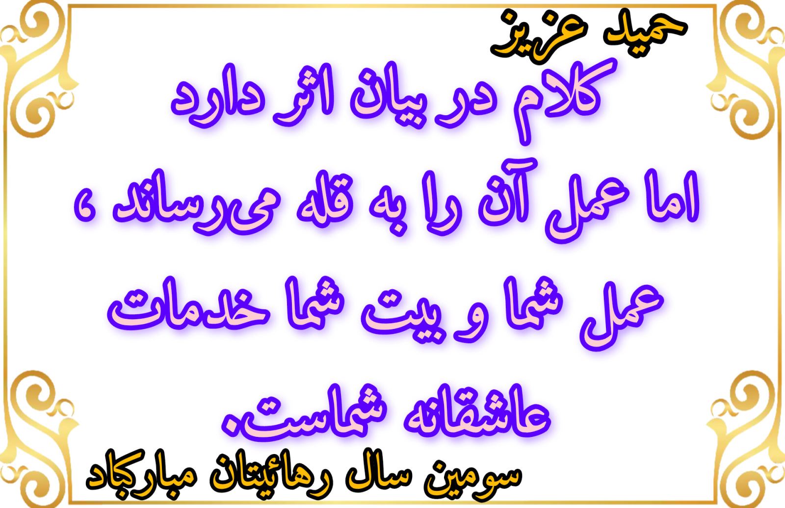 آموزشهایی که از راهنمای عزیزش گرفت ، به خوبی در عمل پیاده کرد و نتیجه آن رشد و پیشرفت اوست ؛ مطمئنم اگر همینطور ادامه دهد ، به جایگاههای بالاتری خواهد رسید. این تولد را به خودش، همسفرش، راهنمای عزیزش و همه اعضای کنگره تبریک میگویم.