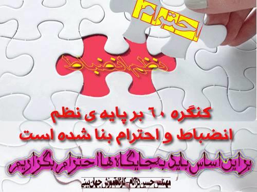 حرمت کنگره۶۰ چارچوب انضباطی و سنگبنای انضباط در کنگره۶۰ با نام حرمت کنگره۶۰ است. اهمیت خواندن حرمت در هر جلسه، که دو مرتبه در ابتدا و انتها خوانده میشود، یک عمل نمادین است تا مفاهیم بنیادین انضباط هر لحظه در ذهن اعضا تکرار و تثبیت شوند.