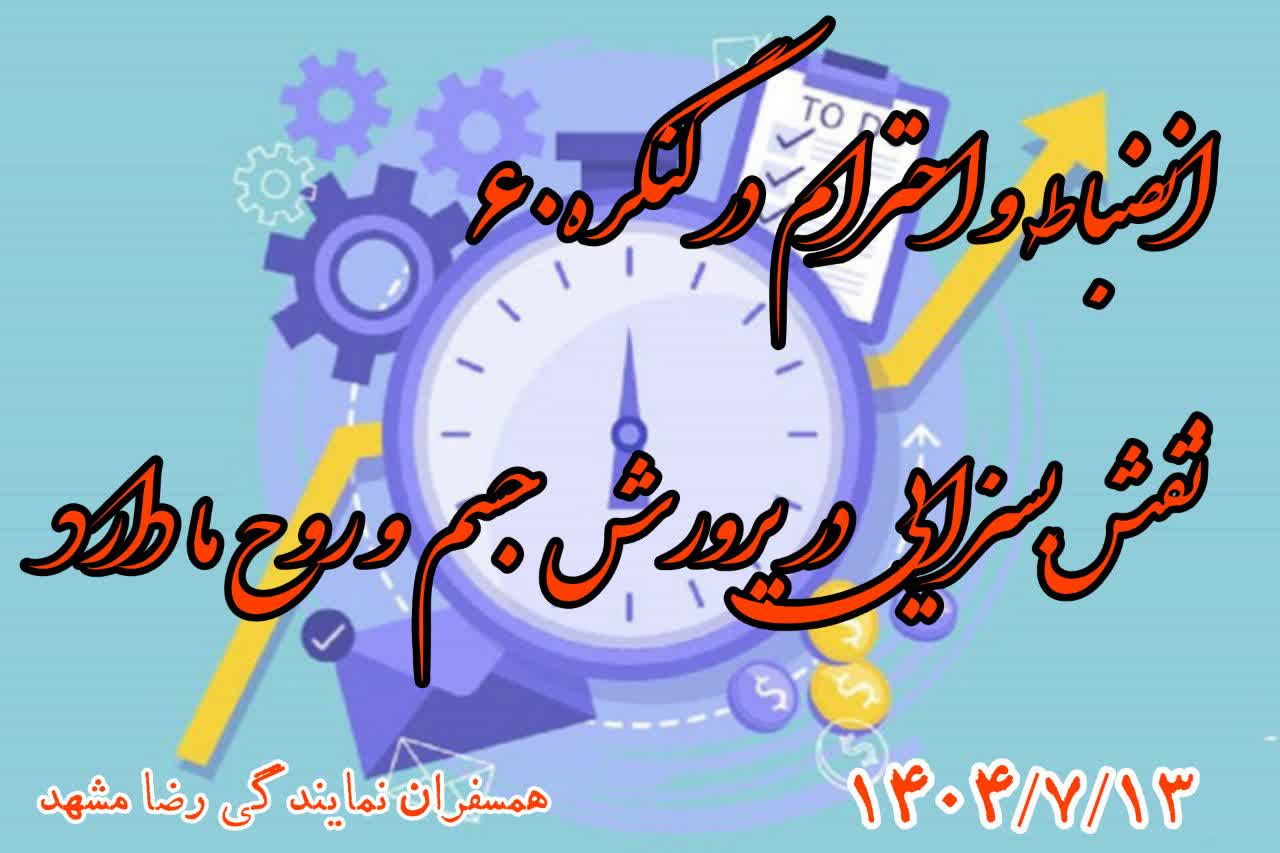 در آخر به این امر پی خواهیم برد که نظم انضباط و احترام در کنگره۶۰ نقش بسزایی در پرورش جسم و روح ما دارد، هرگاه نفسی عمیق کشیده و خدای باریتعالی را برای قدم نهادن در این مسیر مقدس شکر خواهیم کرد.