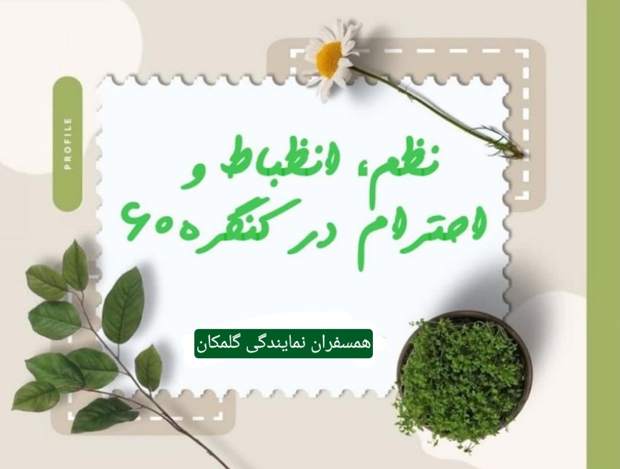 در کائنات، همهچیز از نظمی دقیق برخوردار است؛ از گردش روز و شب و حرکت ستارگان گرفته تا تپش قلب و تنفس در بدن انسان. این نظم شگفتانگیز، در ما احساس احترام و سپاس نسبت به خالق و هستی را برمیانگیزد. میتوان گفت نظم، پیوند همکاری و هماهنگی میان اجزای یک مجموعه است که در مسیر تعالی و تحقق اهداف معین حرکت میکنند. در کنگره۶۰ نیز نظم، انضباط و احترام سه اصل بنیادین برای دستیابی به آرامش، سلامت جسم و روان هستند. پیش از ورود به کنگره۶۰، ما در صور پنهان و آشکار دچار بینظمیهای فراوانی بودیم و در تاریکیها حرکت میکردیم. نخستین و مهمترین آموزش کنگره۶۰ به ما، همین سه اصل کلیدی یعنی نظم، انضباط و احترام است.