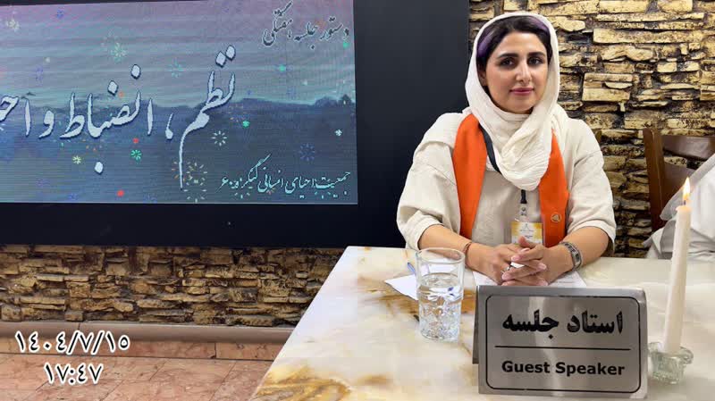 خدا را شکر میکنم که بعد از مدتها توانستم در جلسه عمومی شرکت کنم و آموزش بگیرم. از گروه مرزبانی و ایجنت شعبه، همسفر گلناز خیلی تشکر میکنم که این مدت با من همدل و همراه بودند؛ زیرا اگر همراهیهای ایشان نبود من واقعاً نمیتوانستم به خدمتم ادامه دهم. از نگهبان و دبیر هم سپاسگزارم که به من فرصت دادند، اینجا باشم و آموزش بگیرم. دستور جلسه راجعبه «نظم، انضباط و احترام در کنگره60» است.