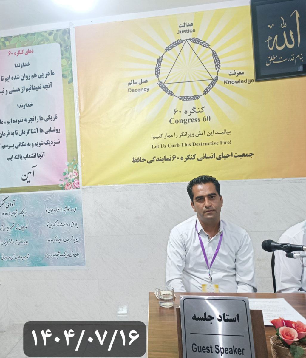 ابتدا از گروه مرزبانی وایجنت محترم که اجازه دادند در این جایگاه خدمت کنم صمیمانه تشکر میکنم دستور جلسه نظم و انضباط و احترام در کنگره ۶۰ می باشد اگر امروز در حال خوش هستم، نتیجه زحمات و نظم حاکم بر کنگره ۶۰ می باشد بنده قبل از ورود به کنگره ۶۰، انسانی بسیار بینظم بودم. نه در کار و نه در زندگی شخصی نظم نداشتم و همین باعث ضررهای زیادی برایم شد.