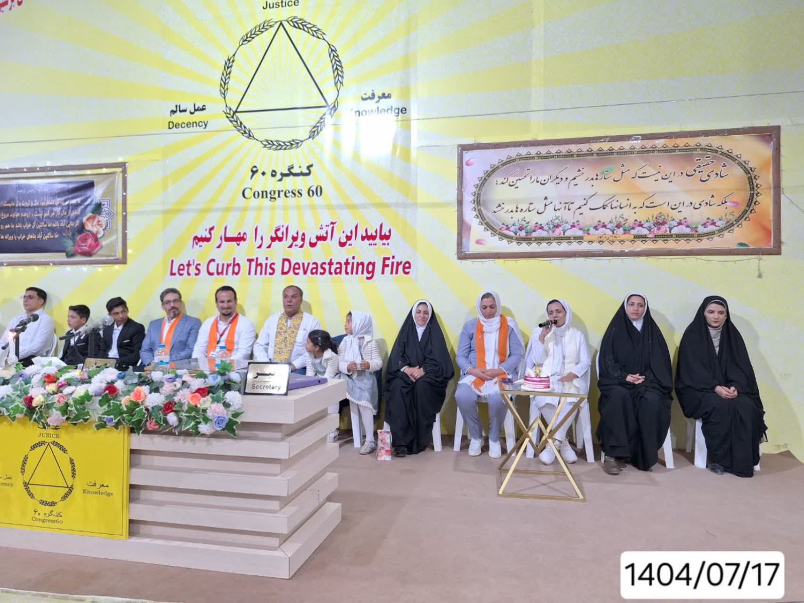 از همه عزیزانی که امروز در این جشن شرکت کردند و ما را تنها نگذاشتند تشکر میکنم. این روز را ابتدا به آقای مهندس و خانواده محترمشان و همچنین به تمام اعضای خانواده کنگره ۶۰ تبریک عرض میکنم. تشکر میکنم از راهنماهای مسافرم، هم در سفر اول و هم در سفر دوم، و همچنین از راهنمای درمان نیکوتین حسین آقا. خسته نباشید عرض میکنم به این عزیزان که در این پنج سال ما را تنها نگذاشتند و با آموزشهای نابشان توانستیم زندگیمان را از تاریکی به سمت روشنایی هدایت کنیم. همچنین از راهنماهای سفر اول و سفر دوم خودم و تمام خدمتگزاران قسمت همسفران شعبه رضا تشکر میکنم.
