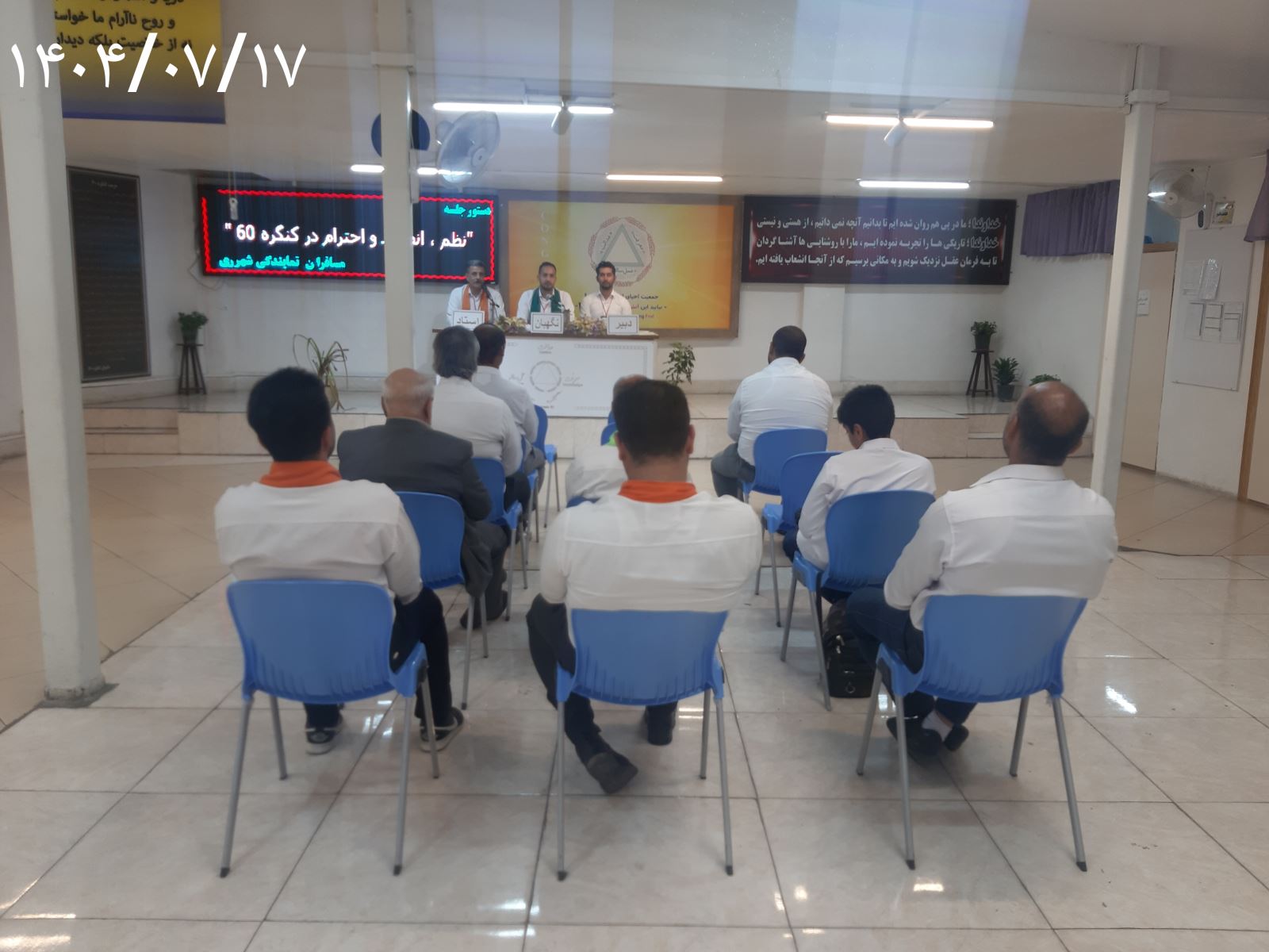 سومین جلسه از دورهی سوم سری کارگاه های خصوصی کنگره۶۰ ویژه همسفران آقا نمایندگی شهرری به استادی راهنمای محترم مسافر حسن، نگهبانی راهنمای محترم همسفر حسین و دبیری همسفر علی با دستور جلسهی"نظم،انضباط و احترام در کنگره۶۰" پنجشنبه مورخ ۱۷ مهرماه ۱۴۰۴ ساعت ۱۴ آغاز به کار نمود.