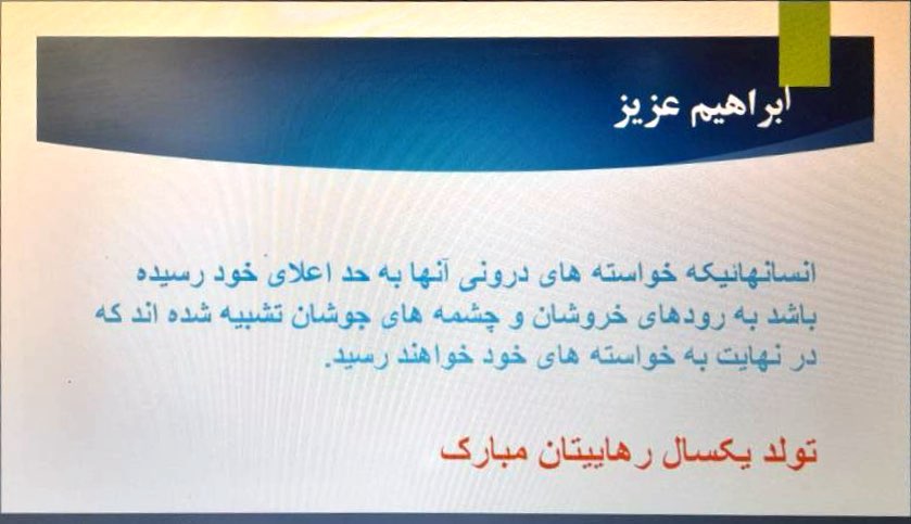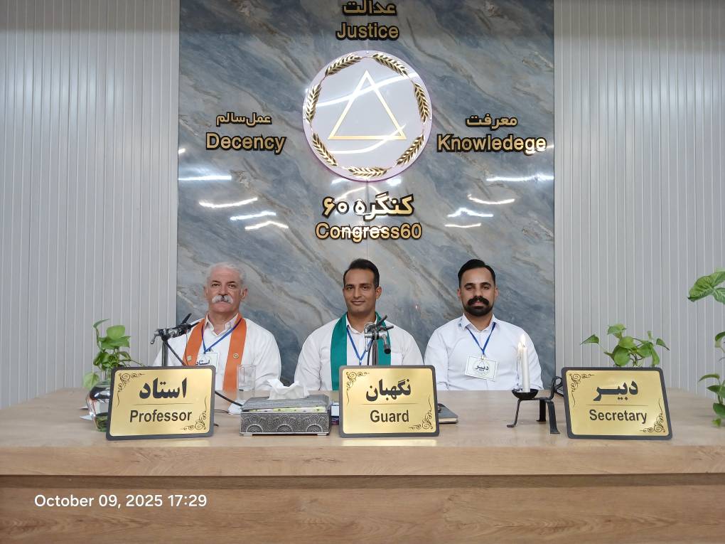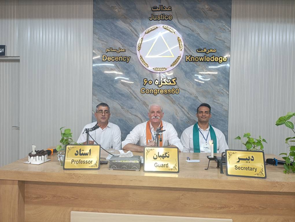 بخش دوم دستور جلسه: تولد یک سال رهائی ابراهیم را به خودش، خانواده محترمش تبریک میگویم. ابراهیم حدود دو تا سه ماه از سفرش گذشته بود که از لژیون آقای محسن احمدوند به لژیون ما، لژیون ششم، آمد. ابراهیم انسانی کنگرهای به تمام معناست. من او را بسیار دوست دارم، انسانی منظم، باادب، گوشبهفرمان و باانگیزه است. در تمام مدت سفرش، حتی باوجود سختیهای کاری و مشکلات زندگی، هرگز غیبت نکرد. در سفر دوم نیز باوجود از دستدادن عزیزانش، استوار و پایدار ماند.