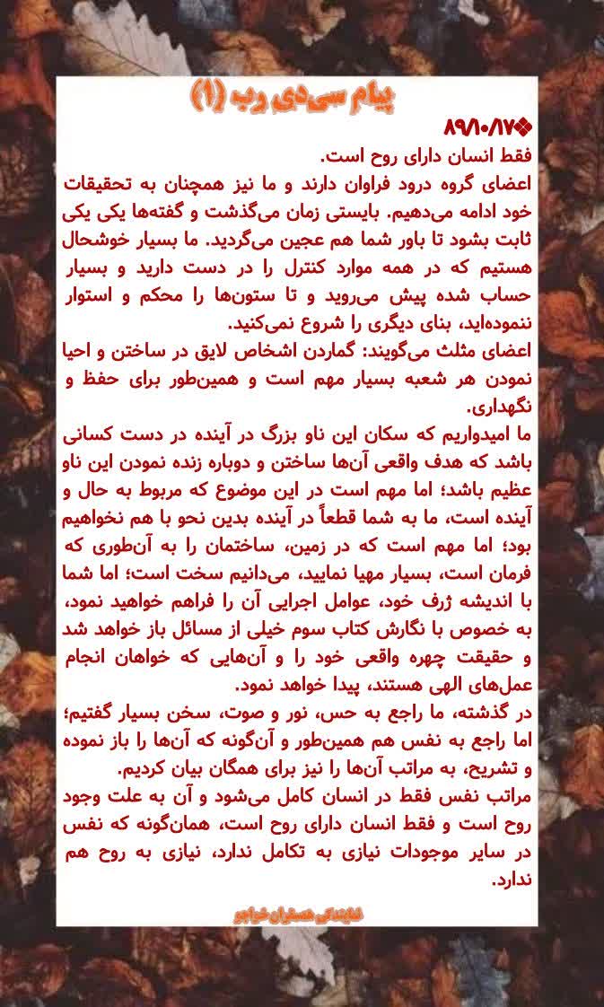 انسانها از طریق همین روح به تکامل میرسند؛ زیرا روح به امر رب است. رب به معنای معلم و مربی است و انسان باید به فرمان رب خود گوش فرا دهد.