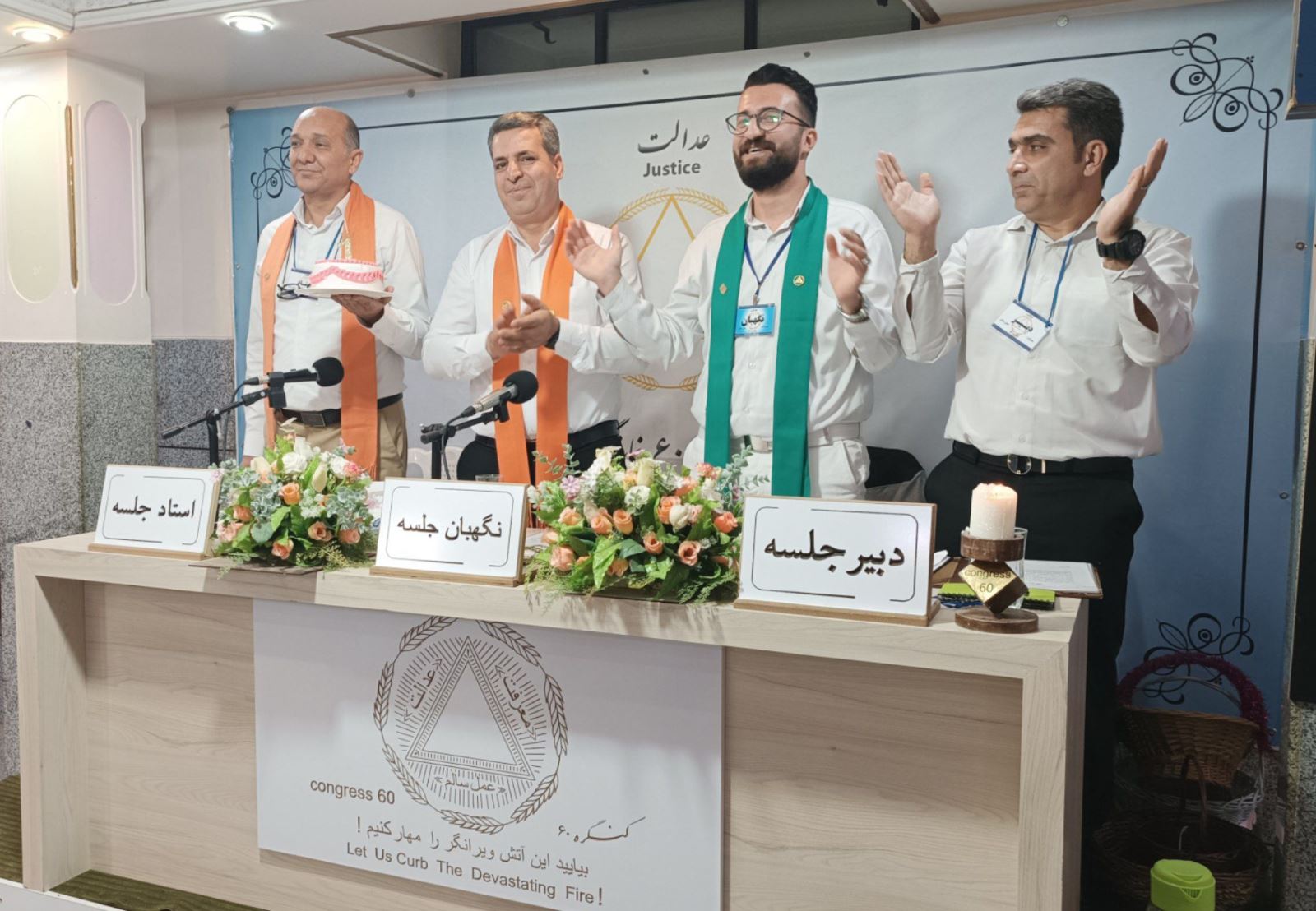 برای این روز ارزشمند خداوند را شکر میکنم آرزو میکنم که تمام سفر اولیها جایگاه خدمتی یا شالهای کنگره۶۰ را تجربه کنند و خدمتگزار باقی بمانند. از آقای مهندس برای فراهم نمودن این بستر، راهنمای dst و نیکوتین خود تشکر میکنم، همچنین قدردان پشتیبانی و حمایت خانواده خود هستم که بنده را در مسیر رهایی حمایت نمودند. وقتی برای اولین بار کتاب ۶۰ درجه را مطالعه کردم متوجه شدم که شروع مصرف من با پایان مصرف آقای مهندس همزمان اتفاق افتاده بود و این نکته به من آموخت که در دوران مختلف ممکن است شخصی وارد تاریکی شود و در همان لحظه شخص دیگری از تاریکی خارج شود و من فقط باید از این تاریکی آموزش بگیرم و باید برای رسیدن به حال خوش بهای آن را بپردازم؛ از خداوند سپاسگزارم که به آرزوی خود رسیدهام و امروز با شال راهنمای dst بر گردنم، تولد یک سال رهایی خود را جشن میگیرم و از همه شما عزیزان برای حمایت و انرژی مثبت صمیمانه تشکر میکنم.