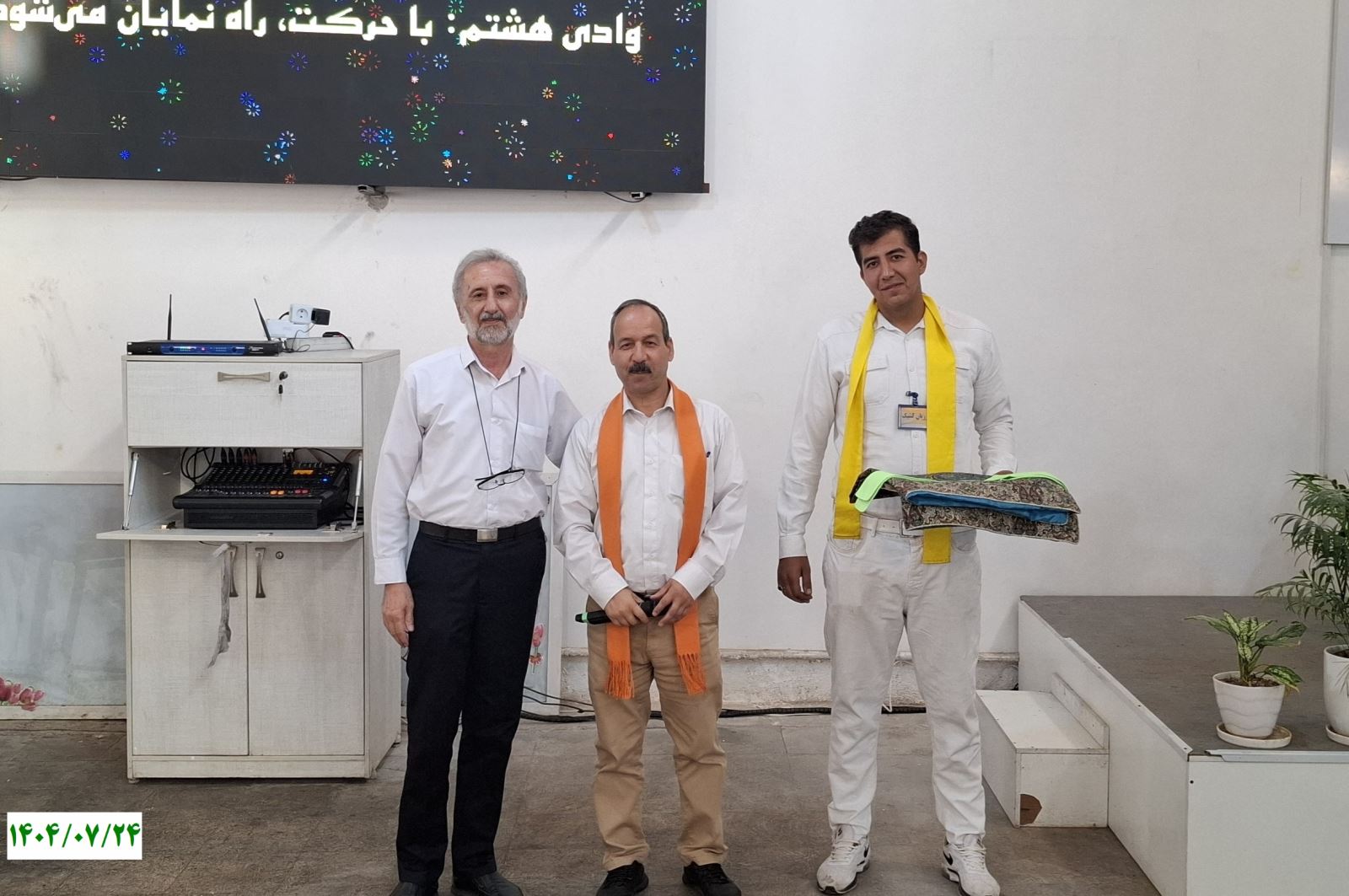 اهدای شال راهنمای تازه واردین به همسفر خسرو: