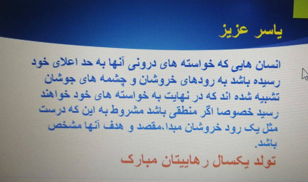 این تولد را در دست آقای مهندس و خانواده محترم و راهنمای محترم آقای فرزاد و رهجویانشان آقای یاسر و آقای یوسف و خانم طاهره عزیزم تبریک میگویم.