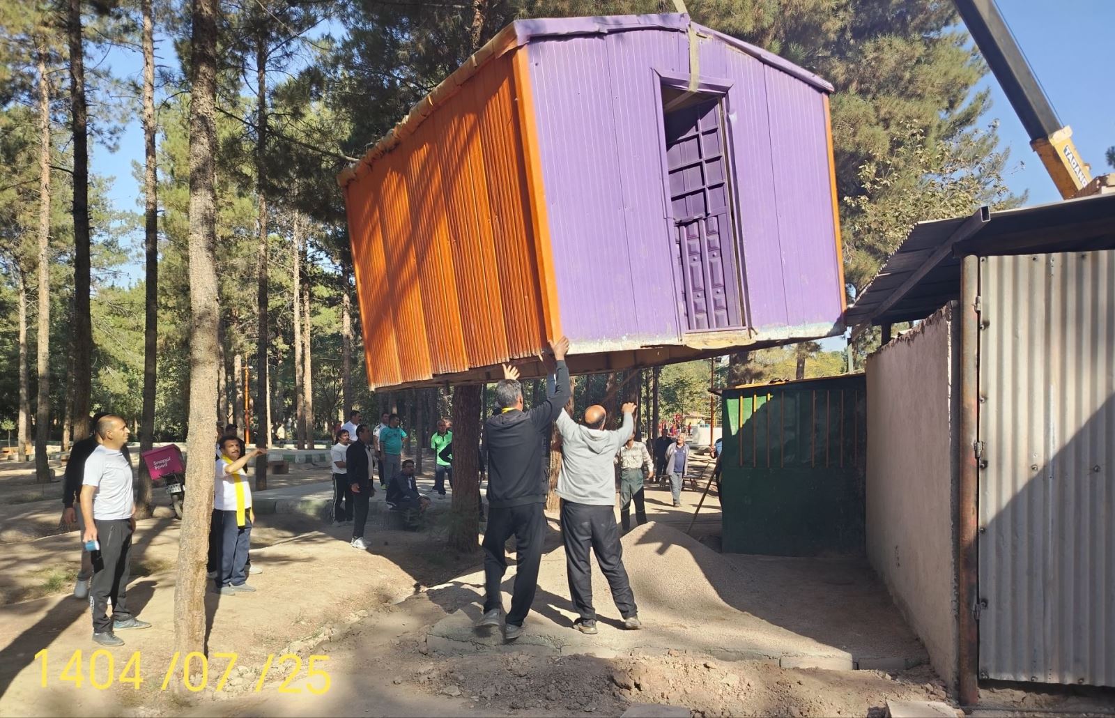 در ادامه زیرسازی و جابه جایی کانکس پارک :