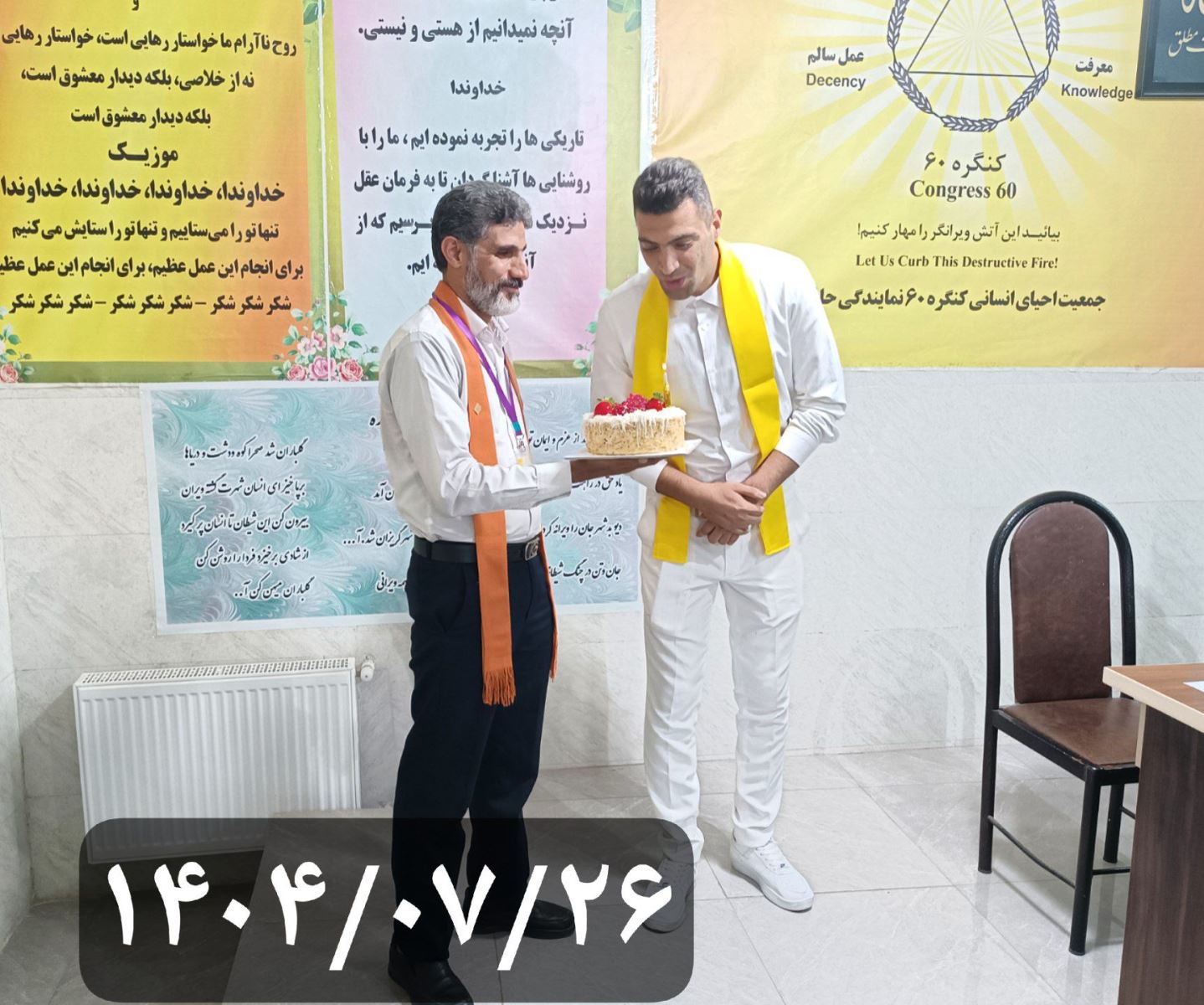 قسمت دوم دستور جلسه تولد اولین سال رهایی مسافر میلاد می باشد بنده هم اولین سال رهایی میلاد عزیز رو به جناب مهندس خانواده محترمشان و شعبه حافظ و همچنین تمام خدمتگذاران کنگره 60 تبریک میگم. میلاد با حال و جهانبینی خیلی خراب پیش بنده آمد ، یک سری از دوستان هم به بنده میگویند میلاد خیلی خوب سفر کرد ولی واقعا اینجور نبوده ، هرکسی فراز و نشیب هایی در سفر اول دارد و میلاد نیز از این مسئله مستثنا نبود، ولی خوشحالم چون خواسته بسیار قوی داشت و توانست وارد سفر دوم بشود و خدمت کند، امروزه خیلی احترام میگذارد سعی میکند رفتار خودش را کنترل کند؛