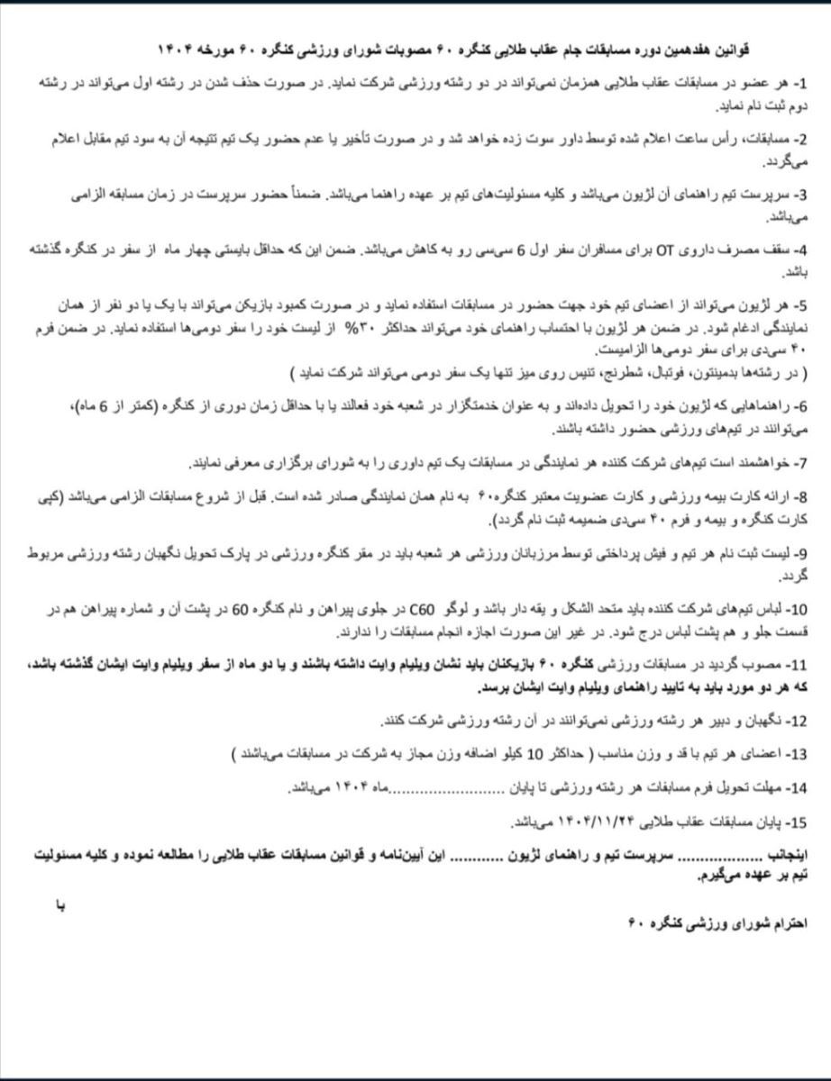 شرایط و قوانین شرکت در مسابقات عقاب طلایی: