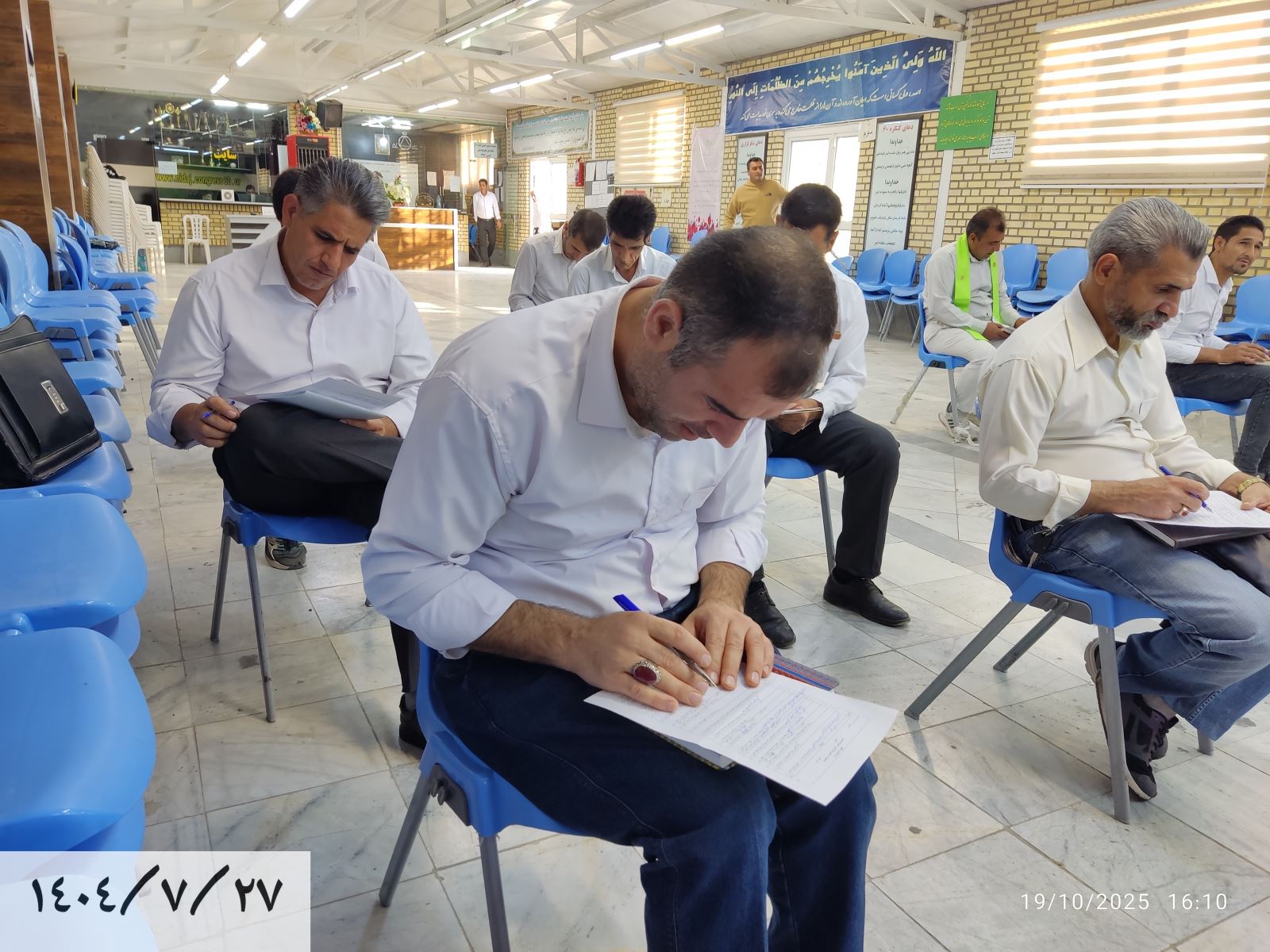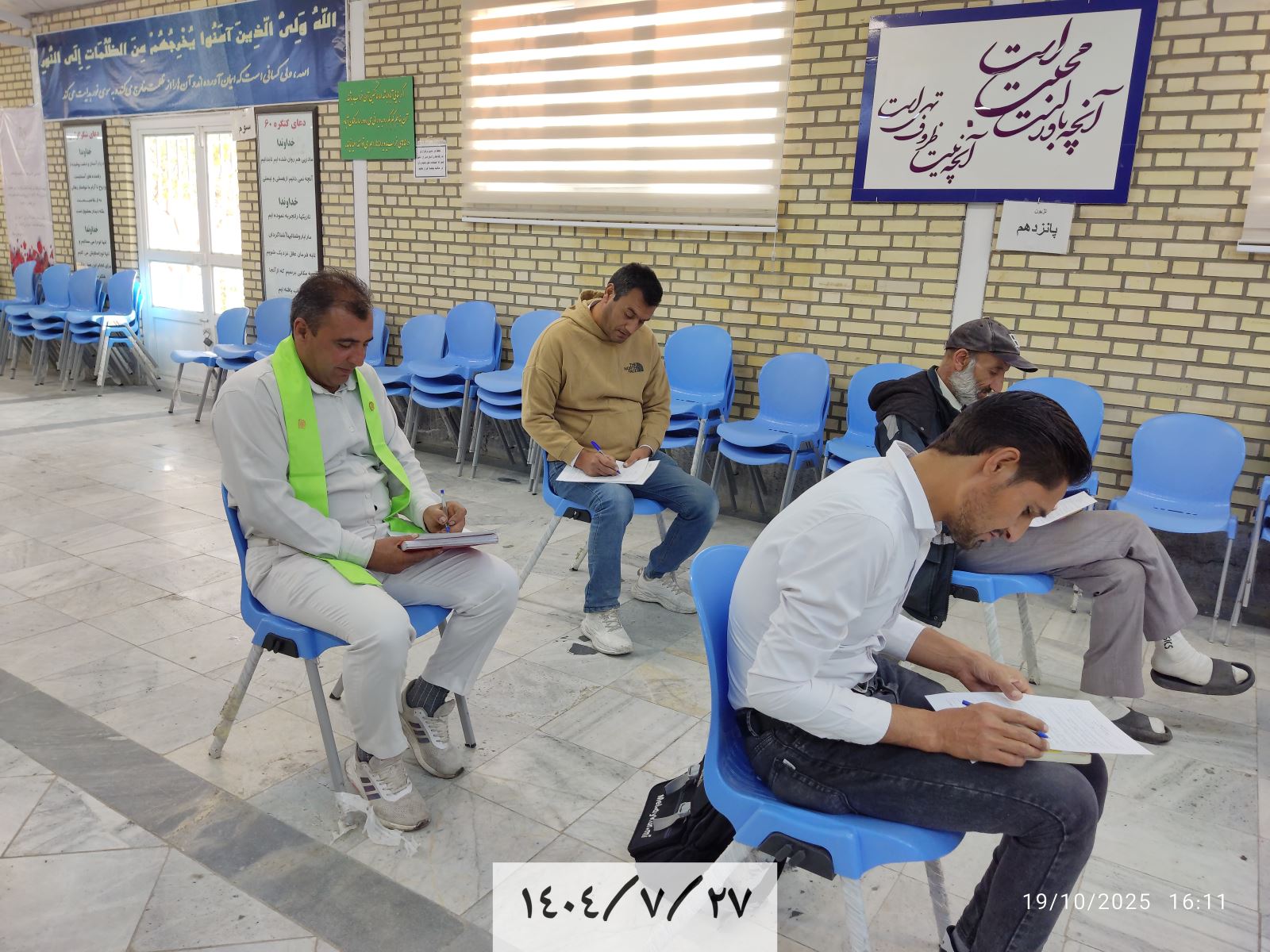 قبل از شروع جلسه امروز، آزمون داخلی در نمایندگی حکیم هیدجی رأس ساعت ۱۶:۰۰ توسط مسئول امتحانات، راهنمای محترم آقا روحاله و با شرکت جمعی از مسافران نمایندگی برگزار گردید.