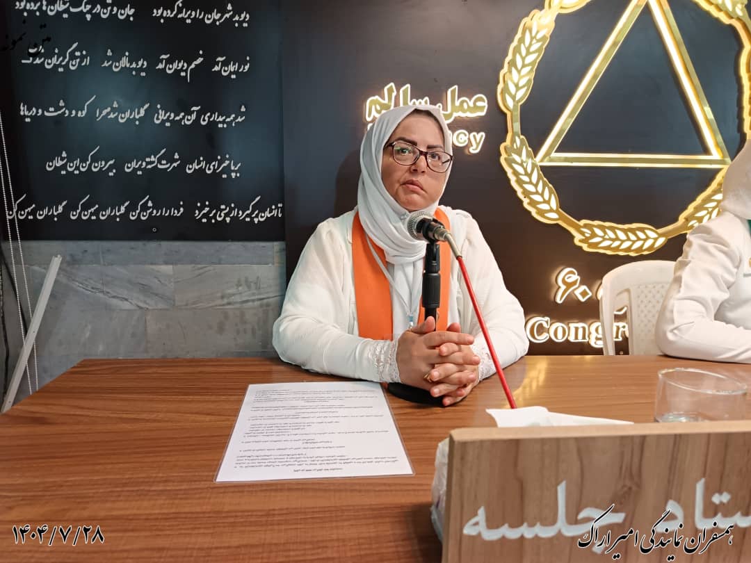سلام از خداوند خود سپاسگزاری میکنم؛ اگر اکنون حال همگی خوب است و آرامش داریم بابت زحمتهای آقای مهندس حسین دژاکام در طی این ۳۰ سال گذشته است. از راهنمای خود همسفر فاطمه اکبری و همسفر لیلا رفیعی تشکر میکنم که برای من زحمت زیاد کشیدند، همچنین از تمام خدمتگزاران کنگره۶۰ که به نحوی خدمت میکنند تا اینکه ما به آرامش و حال خوب برسیم تشکر میکنم.
