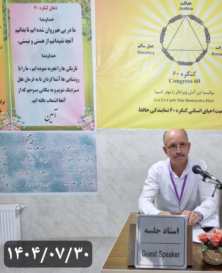 جناب آقای مهندس و راهنمایان کنگره ۶۰ همان باغبانانی هستند که با عشق و محبت، پیوندی در وجود ما ایجاد کردند همین عشق و پیوند بود که سبب شد امروز ما نیز به بار بنشینیم و میوه بدهیم آنان با آموزش و خدمت، مسیر رشد و رهایی را برایمان هموار کردند تا بتوانیم دوباره به تعادل برسیم و طعم زندگی سالم را بچشیم.