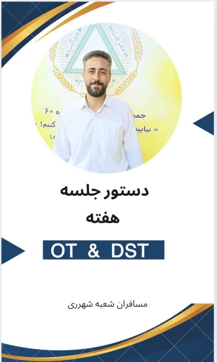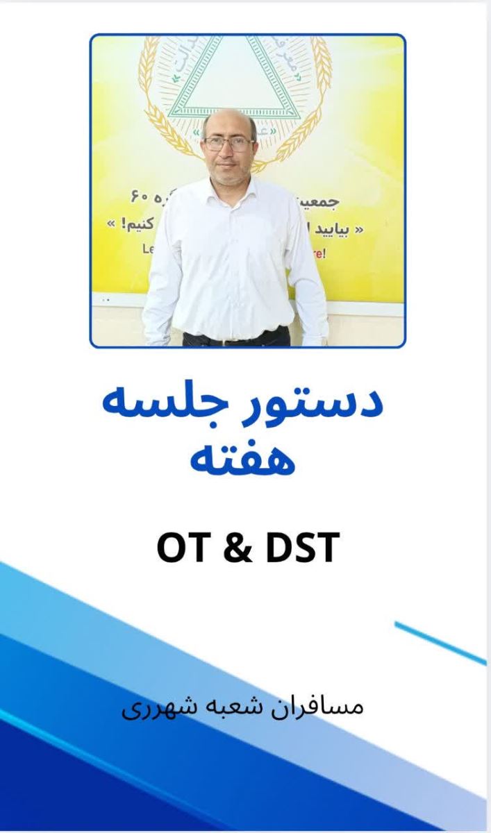 در پایان، بار دیگر از جناب مهندس دژاکام سپاسگزاری میکنم و این هفته را به تمامی خدمتگزاران OT در کنگره ۶۰، بهویژه نمایندگی شهرری، تبریک عرض مینمایم.