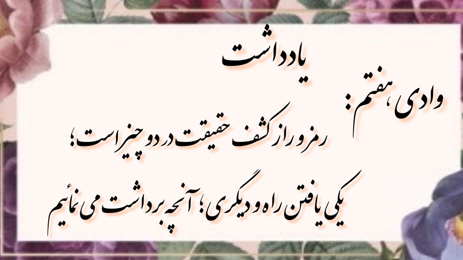 عنوان مقاله: وادی هفتم (رمز و راز حقیقت در دو چیز است، یکی یافتن راه و دیگری آنچه برداشت میکنیم)