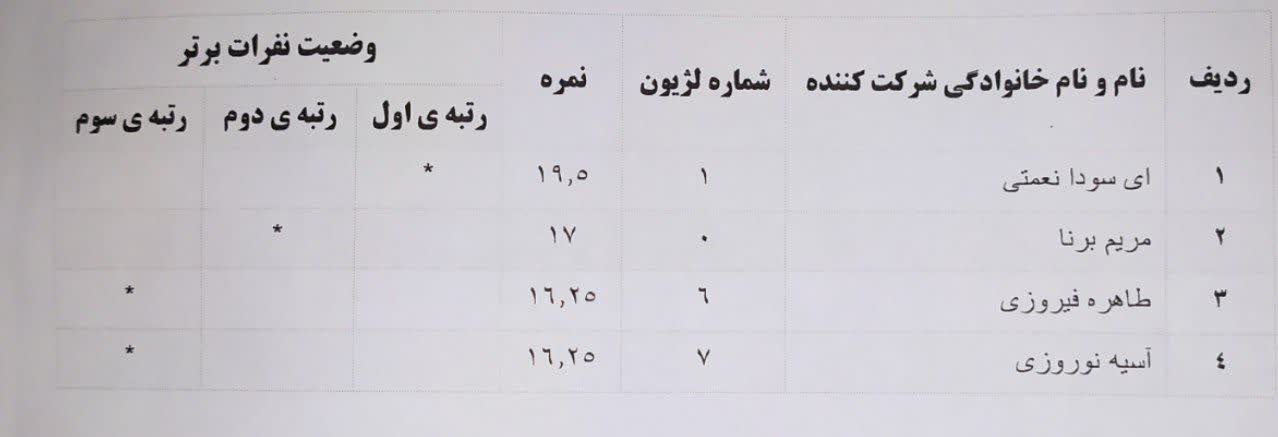 نفرات برتر این آزمون به شرح ذیل میباشد: