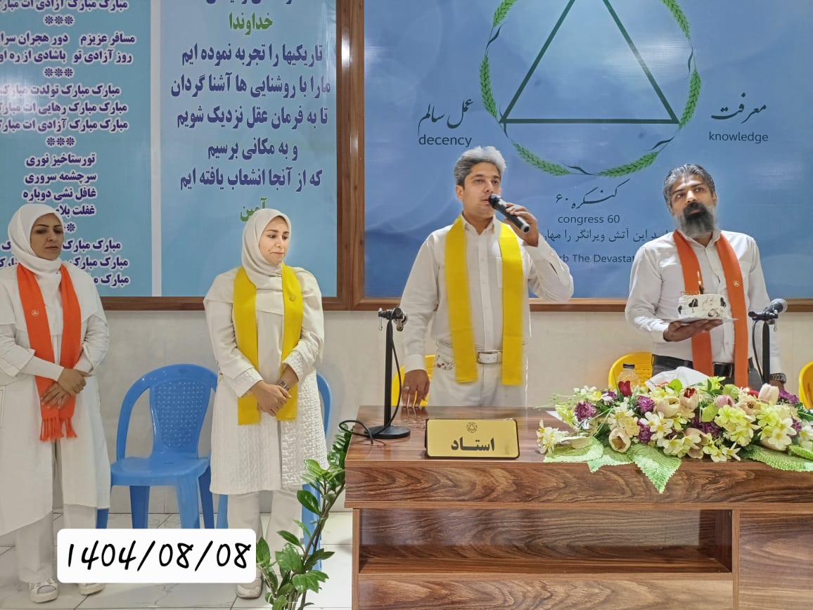 جشن یکسال رهایی مرزبان محترم و پهلوان گرامی، مسافر سعید در بدو ورود به کنگره، مسافر سعید عزیز همانند بسیاری از ما حال خوشی نداشت؛ اما پس از مدتی با فضای کنگره و آموزشها آشنا شد و فرمانبردار خوبی بود. بهعنوان راهنما، هرآنچه به او میگفتم، با دقت و ایمان اجرا میکرد. سفر اول خود را با کمترین غیبت سپری کرد، پس از رهایی، سفر دوم را ادامه داد و در مسیر خدمت قدم نهاد. او برای مرزبانی ثبتنام کرد، پذیرفته شد و با رسیدن به درجهٔ پهلوانی، اکنون بهعنوان یکی از خدمتگزاران فعال و مؤثر شعبه در حال خدمت است.
