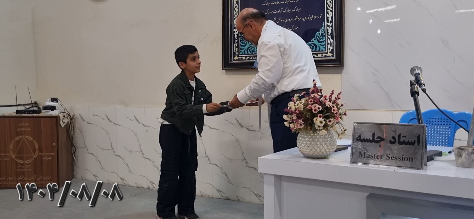 فلسفه پول دادن به کنگره این نیست که پول تو را بگیرد چون من پیش مهندس بودم که ۱۴ نفر آمدند خدمت ایشان جهت پهلوان شدن که ۸ نفر از آنها را قبول نکرند، ۸ تا ۶۰۰ میلیون تومان قبول نکرد، درپایان ازخداوند سپاسگزاریم که معلم براي مافرستاد تا قوانین درست زندگی کردن را به ما آموزش دهد، متشکرم به افتخار آقای مهندس دست بزنید.