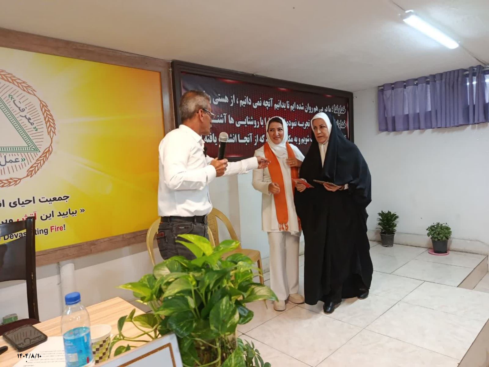 یادم هست روزی به من گفتند: «آنقدر درگیری دارم، کار خانه هست، کمرم درد میکند، نمیتوانم بنویسم ...» من به ایشان گفتم: «شما فقط شروع کنید، بقیه خودش میآید» و واقعاً هم همین شد؛ با پشتکار شروع کردند، ادامه دادند و توانستند چهل سیدی را بنویسند، درست است که کمی طول کشید، اما نتیجهاش عالی بود و امروز در این جایگاه قرار دارند، برایشان بسیار خوشحال هستم و مطمئنم زوجی هستند که روزی شال خوشرنگ نارنجی و سپس سبز را دریافت خواهند کرد. امیدوارم جشن پنجسال رهاییشان را با شال نارنجی ببینم، به علی آقا، آقا تقی و خانم لیلی عزیز از صمیم قلب تبریک میگویم و همینطور به همه اعضای شعبه شهرری، امیدوارم همه مستدام و پایدار باشند.