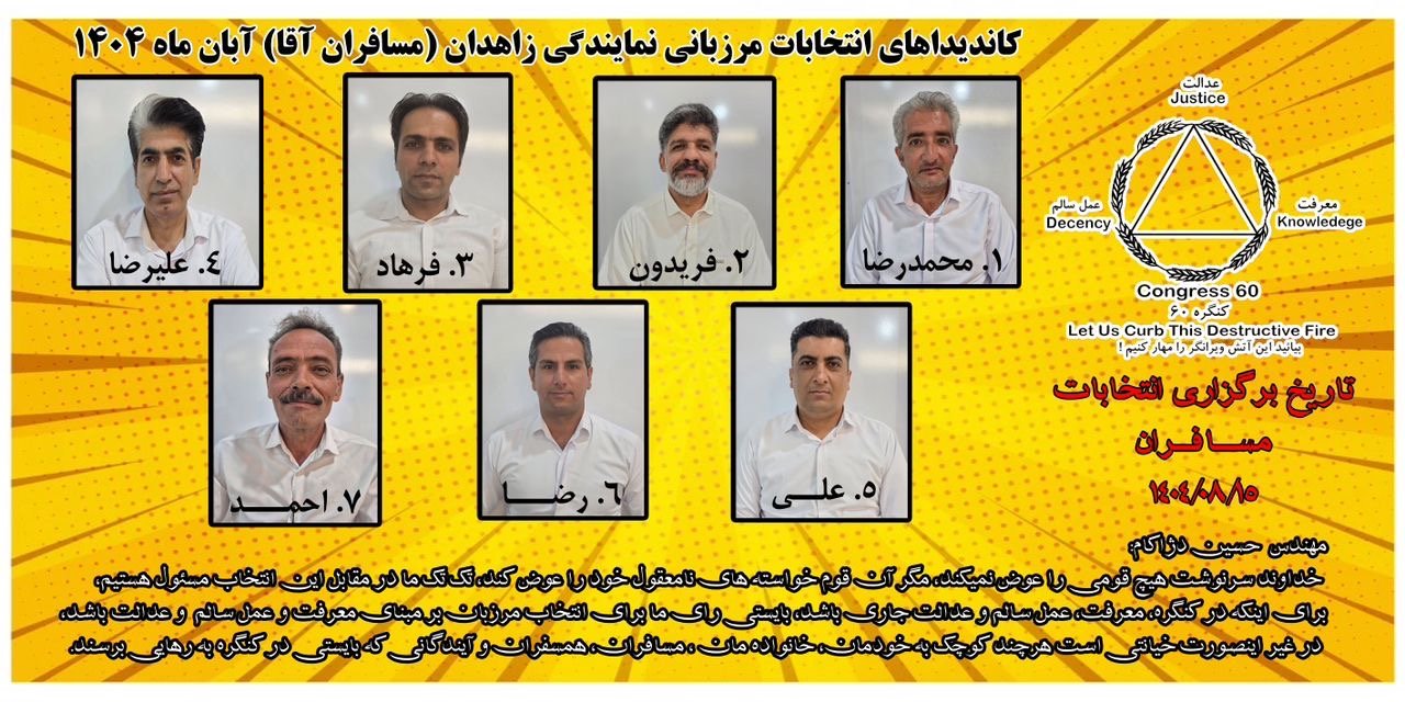 اطلاعیه انتخابات مرزبانی کنگره ۶٠ نمایندگی زاهدان
