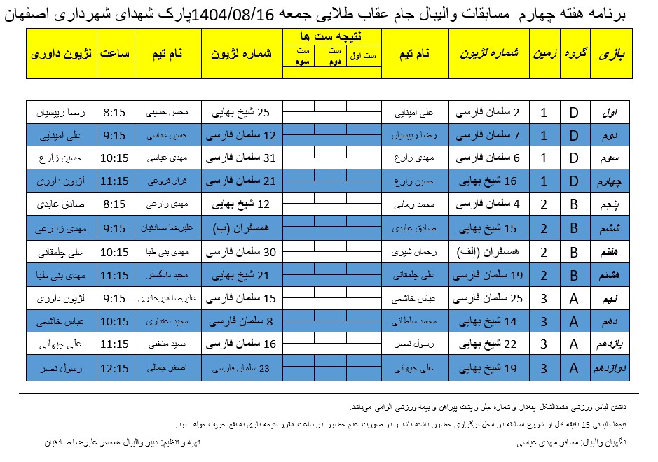 تربیت بدنی نتایج هفته سوم و برنامه هفته چهارم مسابقات والیبال جام عقاب طلائی منبع: پارک شهدای شهرداری (اصفهان) سه شنبه 13 آبان 1404 تعداد بازدید از این مطلب : 283 نتایج هفته سوم و برنامه هفته چهارم مسابقات والیبال جام عقاب طلائی در پارک شهدای شهرداری اصفهان نتایج هفته سوم برنامه هفته چهارم ارسال مطلب: مسافر امیرحسین منبع: پارک شهدای شهرداری (اصفهان) سه شنبه 13 آبان 1404 تعداد بازدید از این مطلب : 283 ویژه ها پذیرش مقاله مهندس حسین دژاکام برای ارائه در کنفرانس "مراقبت از اعصاب"،شیکاگو، امریکا (2026) گامی سرنوشتساز از سوی مهندس حسین دژاکام در درمان کووید-۱۹ و سارس ارائه مقاله جدید و برجسته مهندس حسین دژاکام در حوزه درمان اعتیاد با روش DST با دقت سلولی مولکولی در کنفرانس بین المللی درمان اعتیاد در اورلاندو، فلوری مقاله "تأثیرات رفتاری و مولکولی پروتکل دی اس تی بر مدل حیوانی اعتیاد به تریاک" از مهندس حسین دژاکام، درصدر محافل علمی دنیا مورد بررسی و پذیرش قرار گر دستاورد شگفتآور دیگری از تیم تحقیقاتی کنگره 60 در ریسرچ گیت منتشر گردید. دستاورد شگفت آور دیگری از کنگره 60، انتشار مقاله مهار متاستاز سرطان سینه به صورت short communication رویکردی نوین در درمان سرطان گواهی ارائه مقاله "تاثیر روش دی اس تی بر درمان زخمهای بیماری کولیت اولسراتیو" در سمپوزیوم ایمونولوژی 2024 ایلینوی، امریکا