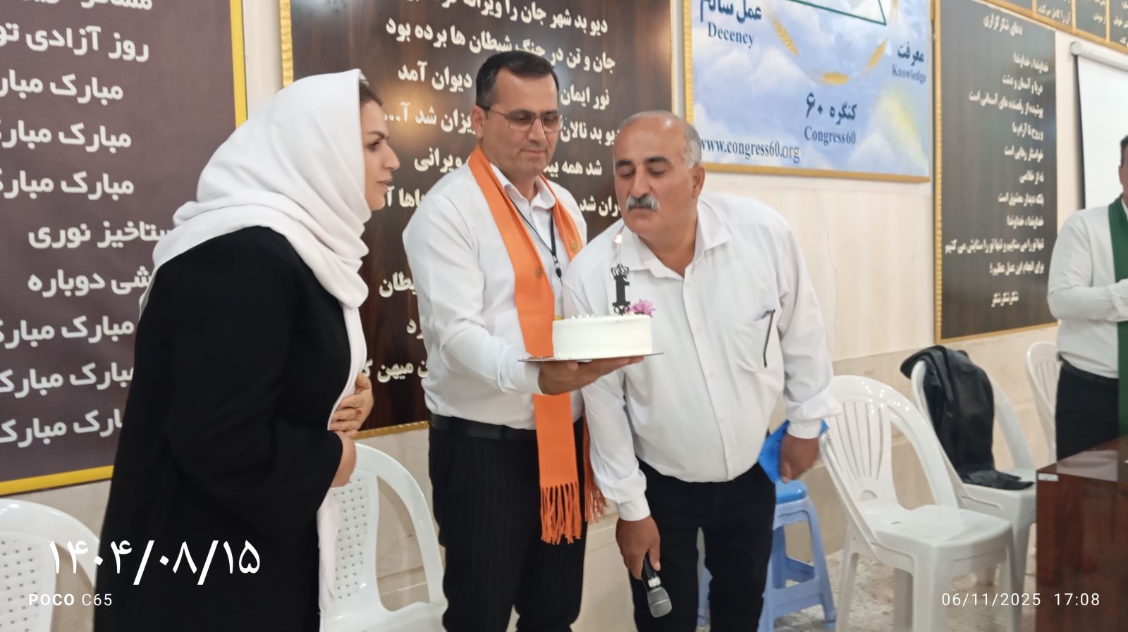 اما در رابطه با بخش دوم دستور جلسه و تولد یک سال رهایی آقا رضا، تولدها یک بهانه است در کنگره 60. من باید به گذشته خود توجه کنم. شخصی که رهایی میگیردقبلا مصرفکننده مواد مخدر بود. باسعی و تلاش خود و با استفاده از روش درمانی کنگره به درمان رسید است.آقا رضا هم همینطور بود. شاید تا قبل از آشنایی با کنگره و طی سالیان درازی توانست منیت خودش را پشت در بگذارد تا بتواند در مسیر درمان قرار بگیرد. اما زمانی که به سرعت مطلب را گرفت آن وقت بود که در مسیر کنگره 60 قرار گرفت مشاوره شد.