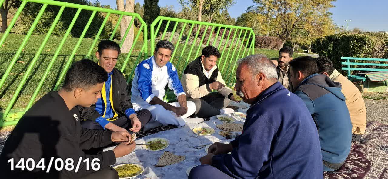 صبح جمعه مورخ شانزدهم ابان ماه ۱۴۰۴ اعضای نمایندگی دنا شهرضا ورزش خود را راس ساعت ۷ صبح در پارک ملت شهرضا بعد از صرف صبحانه در رشتههای والیبال بدمینتون دارت و فوتبال وتنیس روی میز شروع کردند .