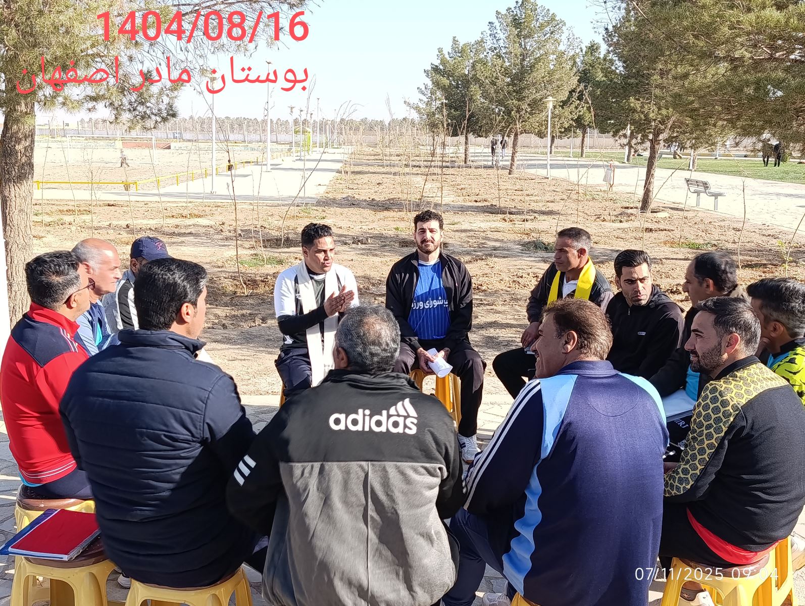 جلسه هماهنگی ایجنت محترم مسافر حامد بهارلو با نگهبانان ورزشی بوستان مادر اصفهان