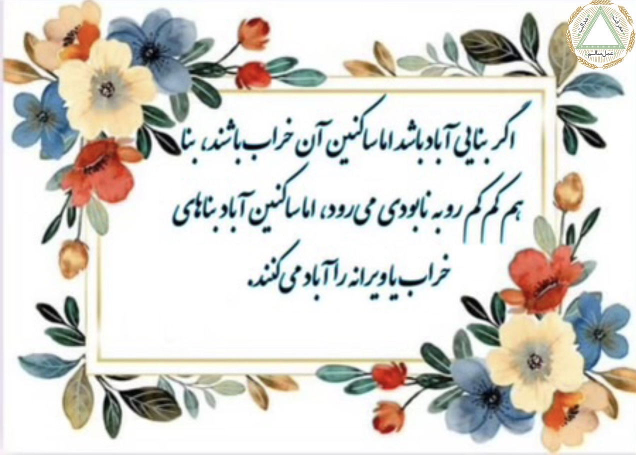«آنچه باور است، محبت است و آنچه نیست ظروف تهی است». ساختارهای بزرگ و کارساز با عشق، ایمان و محبت آغاز میشوند. همان محبت و عشقی که قدرتمطلق در تمام ذرات عالم جای داده است. اگر این محبت و عشق نبود، ساختارهای مفید هم شکل نمیگرفت. با محبت است که انسان بخشنده میشود و از آنچه دوست دارد، میگذرد.