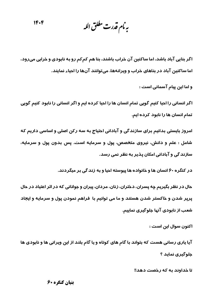 به اطلاع همسفران آقا نمایندگی شادآباد میرسانیم کارگاه آموزشی خصوصی همسفران آقا کنگره۶۰ در روز پنجشنبه مورخ 22 آبانماه 1404 رأس ساعت ۱5:00 با دستور جلسه «گلریزان» برگزار میشود. از شما همسفران عزیز دعوت به عمل میآوریم تا با حضور بهموقع و مشارکت در این جشن سهم پررنگی داشته باشیم.