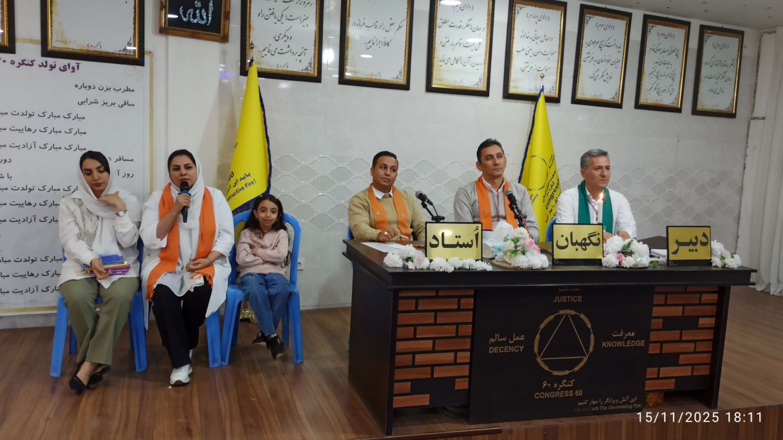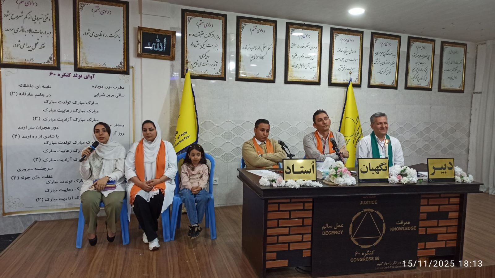 قسمت دوم دستور جلسه تولد آزادمردی راهنمای محترم علی عبدالمالکی است، به علی عزیز، همسفر محترم و همسفران کوچکش لیان و مانلی تبریک میگویم و امیدوارم که در این مسیر ماندگار باشند. علی زمانی که به شعبه حر آمد انضباطی بود و از شعبه ایمان آمده بود، در آنجا سفرش را نیمه کاره گذاشته بود و بعنوان مسافر انضباطی وارد شعبه حر شد و حسی من را انتخاب کرد. یک آدم چهل کیلویی، رنگ مثل گچ دیوار و با حال خیلی خراب و با تیکهای شدید عصبی و با مصرف زیاد قرص و اوپیوم بود. خدا را شکر در مسیر کنگره قرار گرفت و از سفر اول در شعبه در قسمت اوتی خدمت میکرد و در کل جوهره خدمت در علی وجود داشت. علی بعد از آن در مرزبانی در خدمت آقای اکبر جوادی که ایجنت بودند خدمت کرد و بعد از دوره مرزبانی هم در قسمت تازه واردین و الان هم در ساختمان سیمرغ خدمت دارد امیدوارم بهترینها قسمت قلب مهربانش بشود. از اینکه به صحبتهای من گوش کردید از شما تشکر میکنم.
