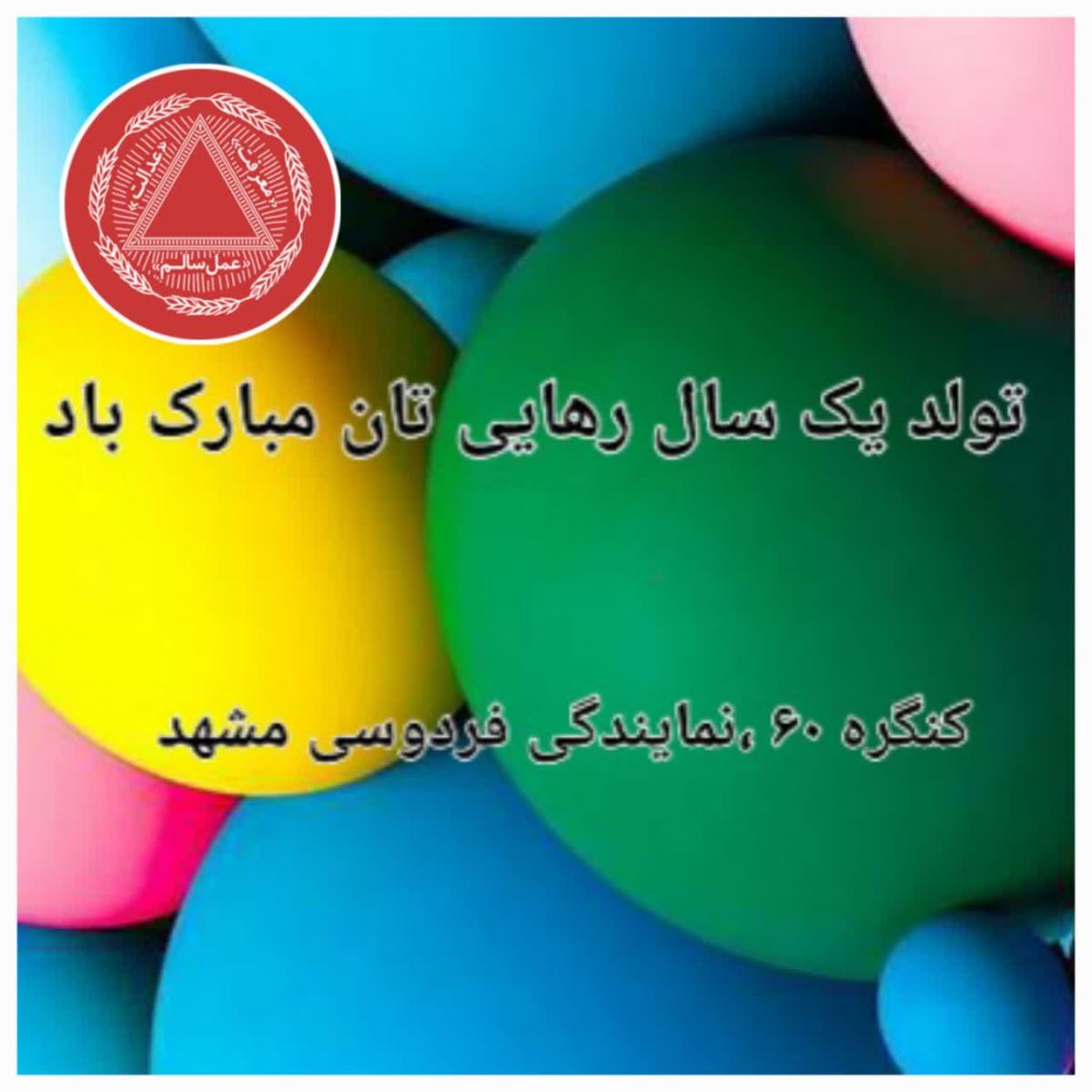 در روز سه شنبه : 1404/08/27 شاهد جشن تولد یک سال رهایی مسافر ناصر رهجوی راهنمای محترم مسافر تقی از لژیون یازدهم نمایندگی فردوسی مشهد خواهیم بود.