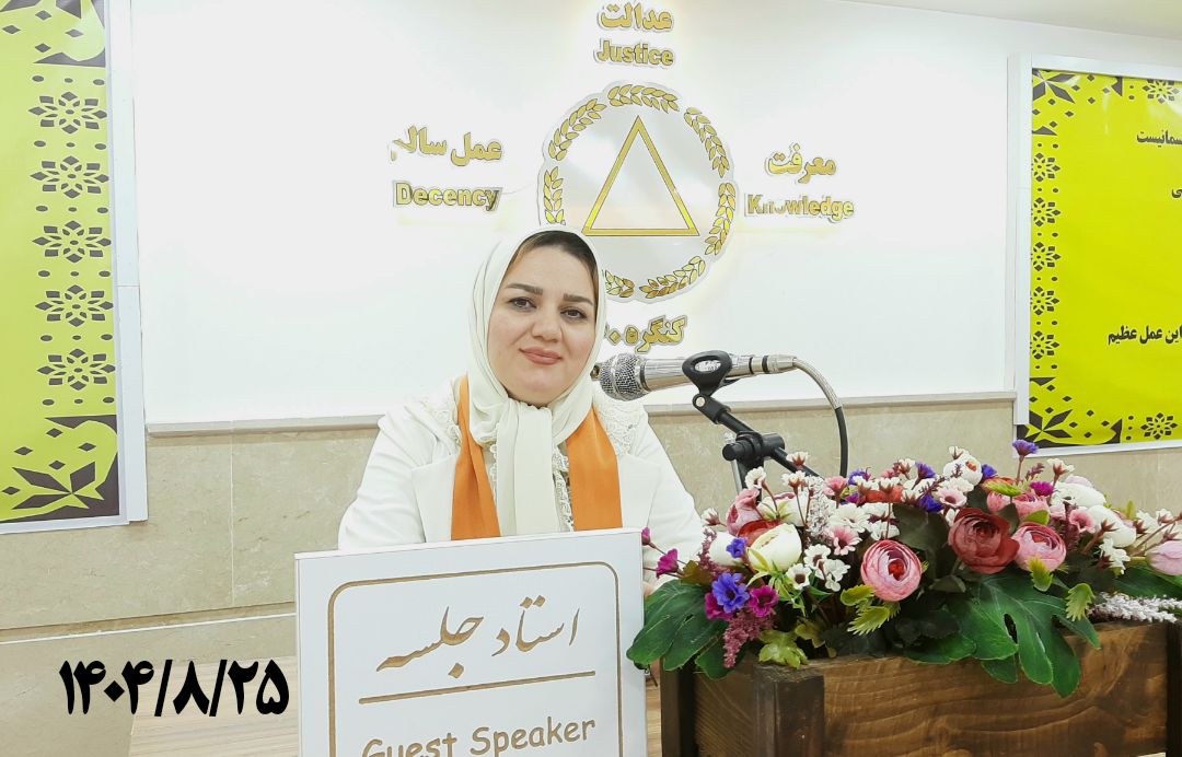 خداوند را شاکر و سپاسگذارم که امروز در جمع شما یاران با محبت هستم تا بتوانم در کنار شما خدمت کنم و آموزش بگیرم. از زحمات ایجنت و مرزبانی این شعبه بسیار سپاسگزارم شعبه خوب و پر انرژیای دارید خوشحالم که در خدمتتان هستم از همسفر منصوره ممنونم که این فرصت را در اختیار من قرار دادند. دستور جلسه نقش سیدی نوشتن در آموزش و رهایی؛ دستور جلسهای که در زندگیام بسیار پایهای بسیار ارزشمند و بسیار تاثیرگذار بود. سیدی نوشتن و گوش دادن فایلهای صوتی آقای مهندس همهی اعضای کنگره را هم زبان هم دل کرده در هر شعبه که حضور پیدا میکنیم قانونها، صحبتها، رفتارها همه به یک شکل هست و اصلا احساس غریبی و غربت نداریم و گویی پا در خانه خود گذاشتهایم. در گذشتههای دور که یک شعبه داشتیم و امروز به لطف گلریزان و چون دستور جلسه گلریزان رو پشت سر گذراندهایم جا دارد یادی کنیم هفته خیلی پر انرژی و خوبی بود به همهی شما این هفته زیبا را تبریک میگویم انشاالله که توانسته باشیم در حد توانمان آن چیزی را که باید ارائه کرده باشیم و بخشی از آن مالی را که باید گذشته باشیم تا به شعب افزوده بشود و این بخششها را به مصارف خودشان برسانند.