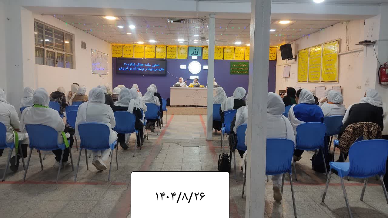 جلسه دوازدهم از دوره هجدهم کارگاههای آموزشی خصوصی همسفران کنگره۶۰ نمایندگی ساوه به استادی همسفر آزاده، نگهبانی همسفر فخری و دبیری همسفر حدیث با دستور جلسه « نقش سیدی و نوشتن آن در آموزش» روز دوشنبه ۲۶ آبان ماه ۱۴۰۴ ساعت ۱۶:۰۰ آغاز به کار کرد.