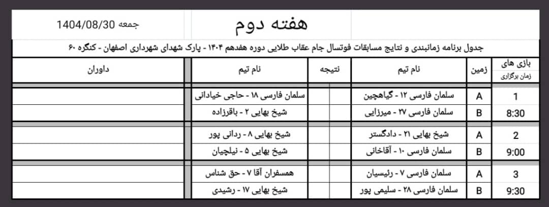 نتایج هفته اول و برنامه هفته دوم مسابقات فوتبال جام عقاب طلائی