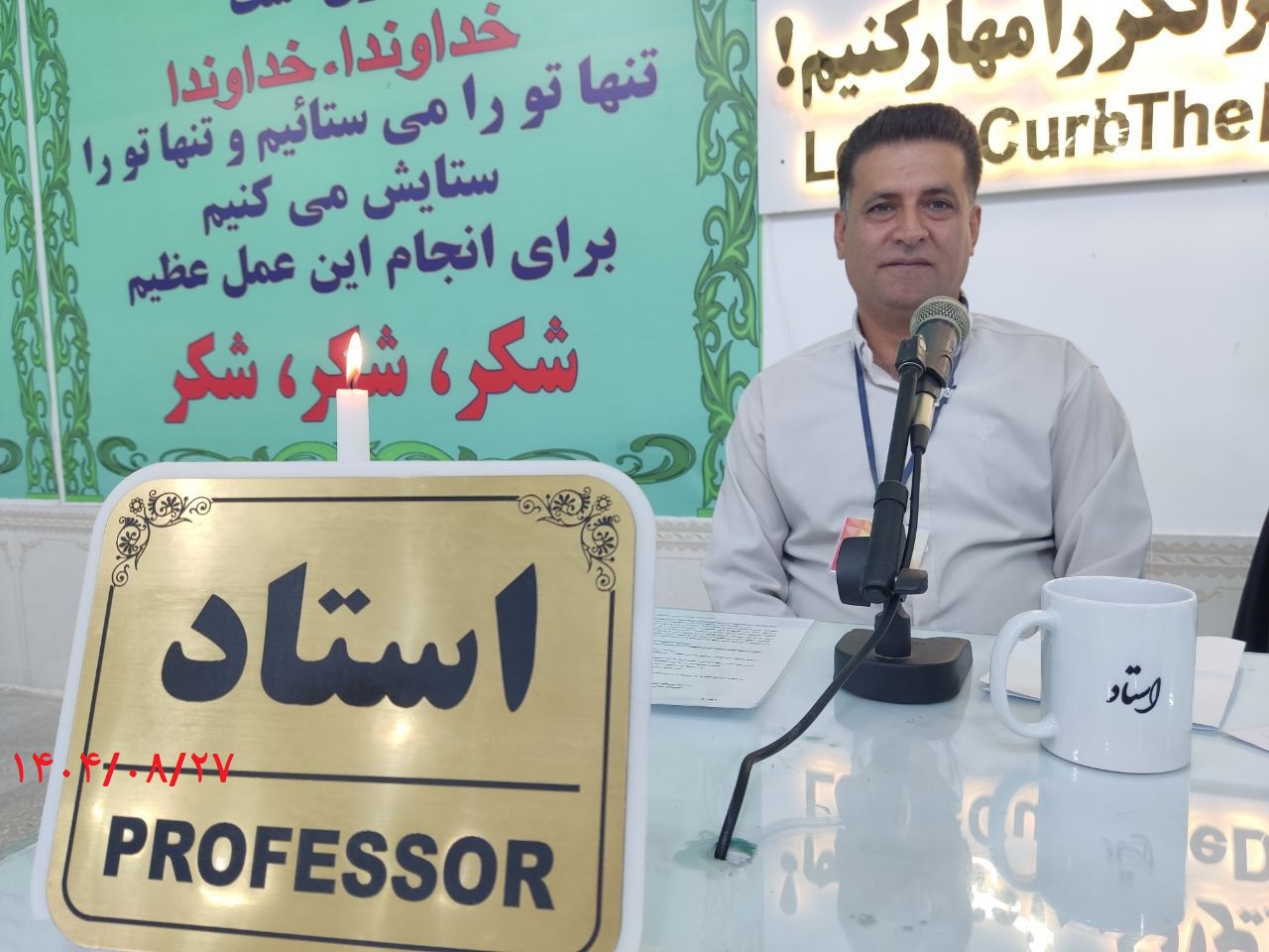 خدا را شکر میکنم که امروز در این جایگاه قرار گرفتم و از نگهبان، دبیر و راهنمای خوبم، قاسم آقا، تشکر میکنم که این فرصت آموزش را در اختیار من قرار دادند.